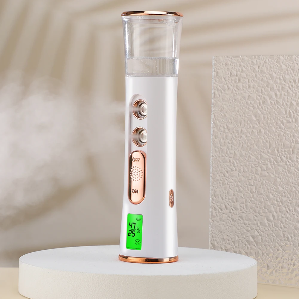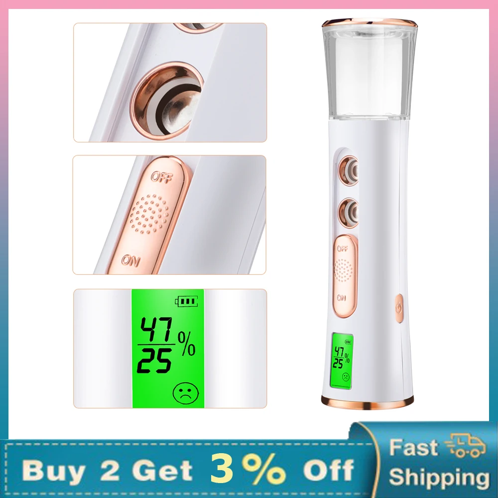 1. Этот нано-Спрей Инструмент для увлажнения увлажняет, восстанавливает, успокаивает кожу и уменьшает секрецию масла, придавая коже лица комфортный спа-салон.2. Водяной туман, распыляемый из резервуара для воды объемом 25 мл, деликатный и мягкий, проникает в нижнюю часть кожи, увлажняет кожу, не повреждая макияж, И улучшает внешний вид плавающего порошка после макияжа.3. Двухструйный дизайн и операции с одной кнопкой делают увлажнение более быстрым и эффективным, бережно ухаживает за кожей и быстро восстанавливает упругость кожи.4. Этот распылитель оснащен светодиодный дисплеем высокой четкости, который может проверить масло кожи и влагу, чтобы помочь вам понять состояние кожи и контролировать баланс кожи.5. Наш распылитель маленький, светильник и портативный, что позволяет вам пополнять воду в любое время и в любом месте, и снимает раздражение кожи, например, тепло, солнечные ожоги или зуд.* Пожалуйста, используйте естественную минеральную воду или водорастворимые жидкости, такие как молоко. Не используйте чистую воду, дистиллированную воду, эфирные масла, гидросолы, вязкие жидкости и т. д.