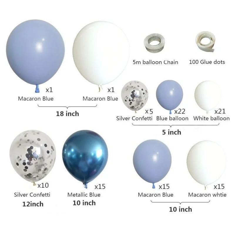 107 шт.лот синие воздушные шары гирлянда Арка набор синие белые сер...