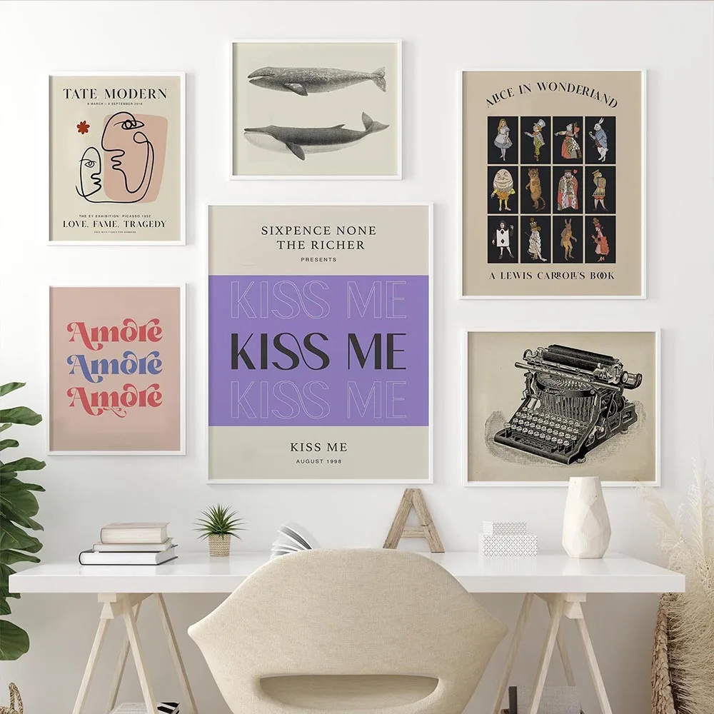 Страна Чудес Художественная печать абстрактная Настенная картина Line Face постер на холсте Поцелуй меня Современная Цитата домашний декор для гостиной