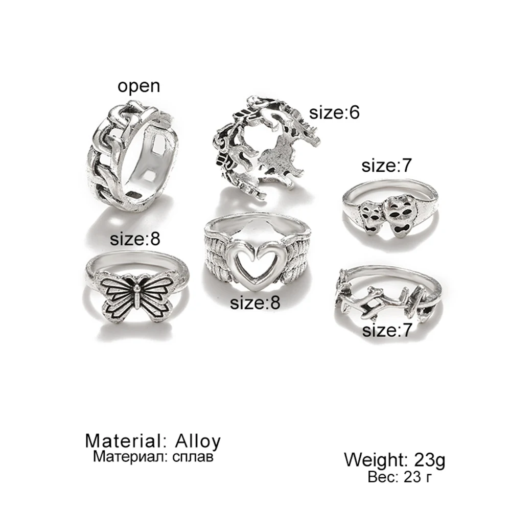 KISSWIFE Панк Винтаж Серебряный Цвет Крылья Ангела Сердце Кольца Набор для Женщин Готический Хип-Хоп Животное Бабочка Череп Кольцо Ювелирные Изделия Партии
