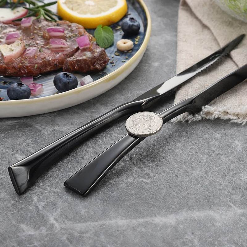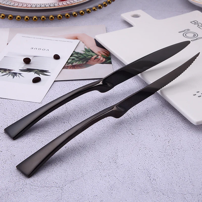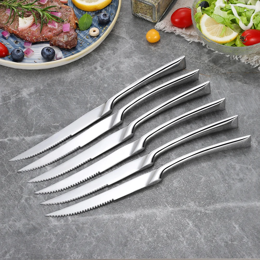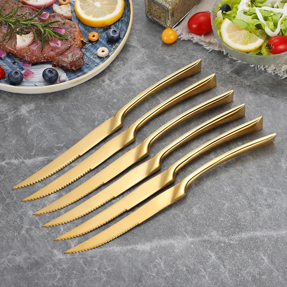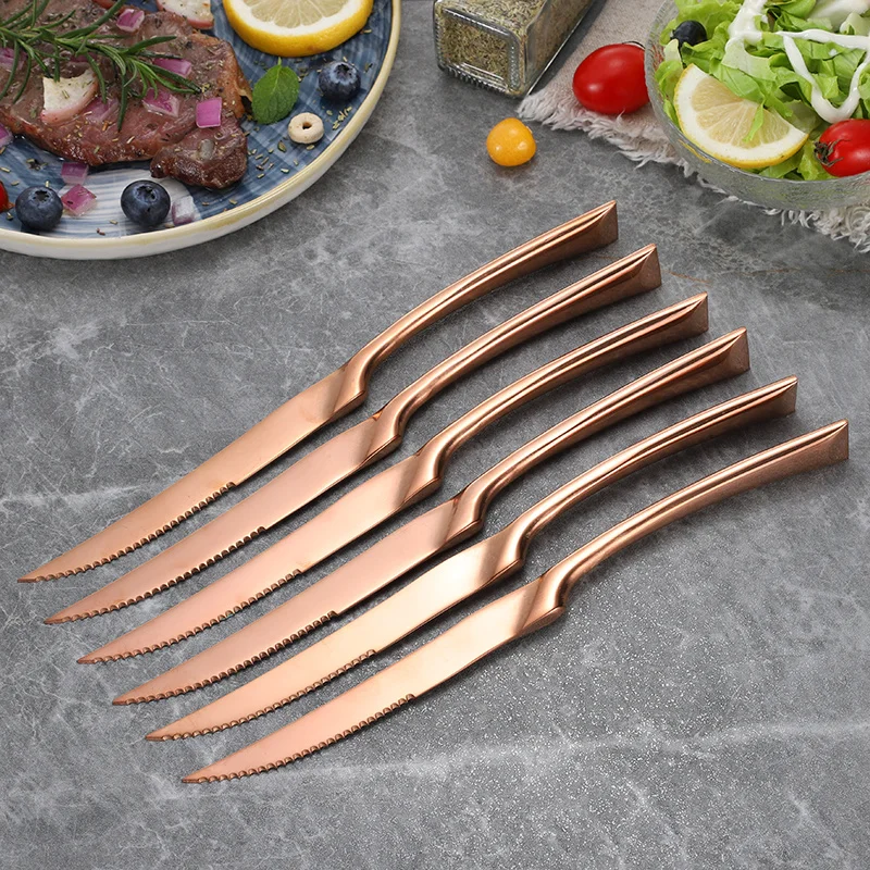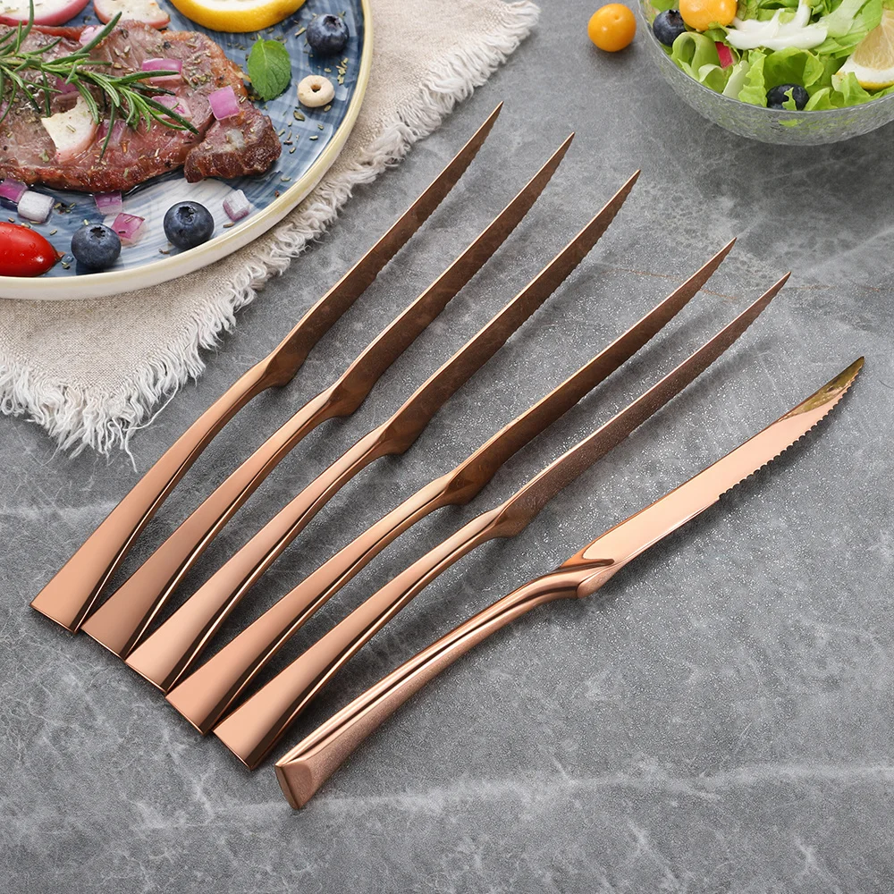 6 шт., роскошный нож для стейка, розовое золото, Радужный зеркальный лак, острый набор посуды, столовые приборы для ресторана, набор посуды из нержавеющей стали