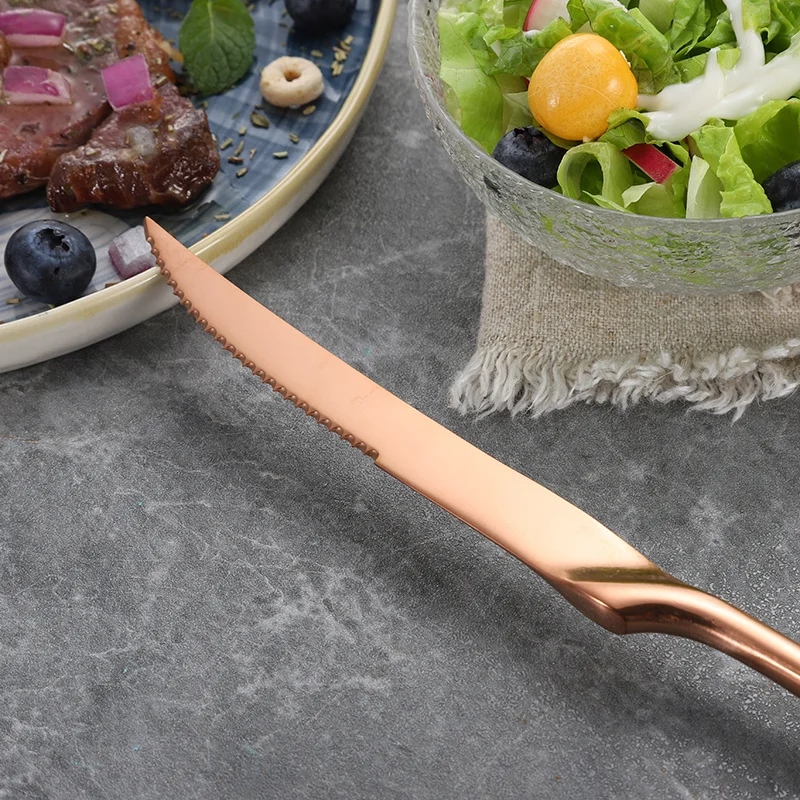 6 шт. роскошный нож для стейка розовое золото Радужная зеркальная полировка набор столовой посуды из нержавеющей стали