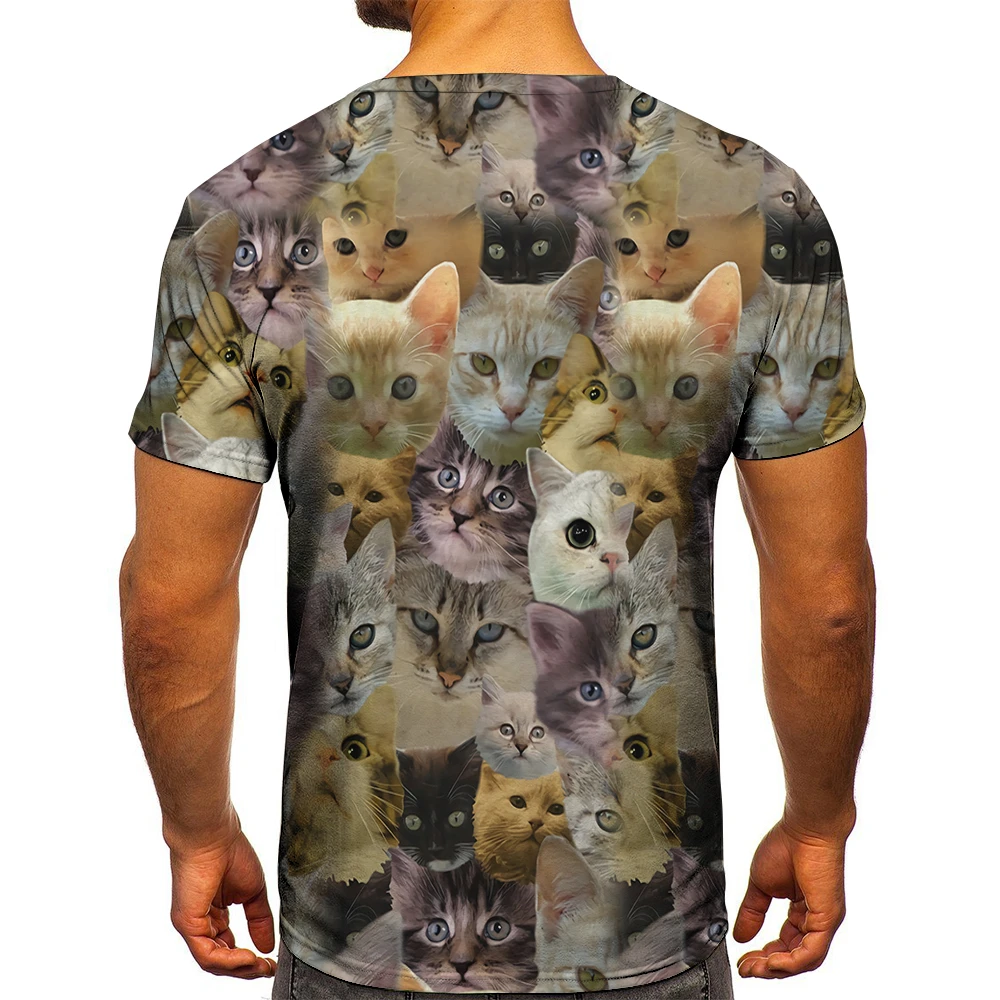 Футболка мужская с 3d принтом, Повседневная футболка с милым котико...