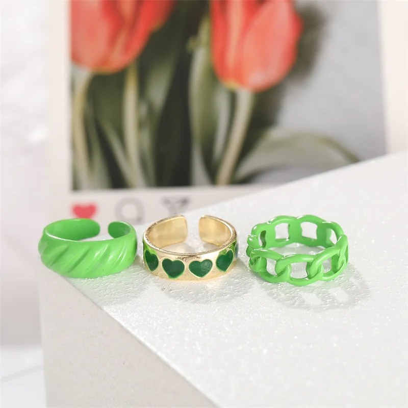 Набор ярких колец с эмалью для женщин, Модные Винтажные Ювелирные украшения на палец в форме сердца, с капель масла, в металлическом стиле, карамельные цвета