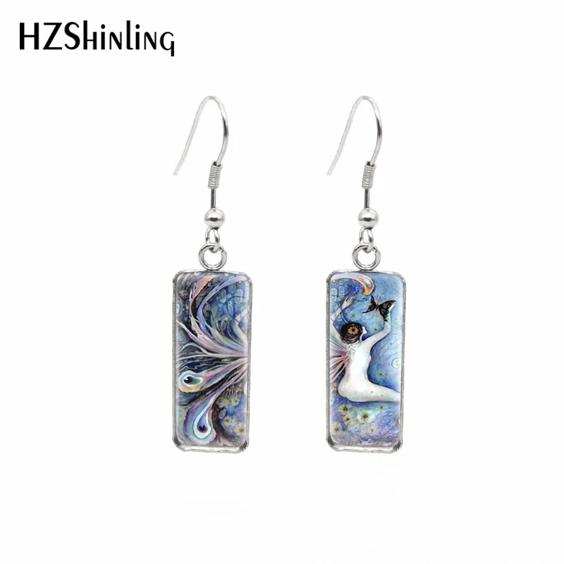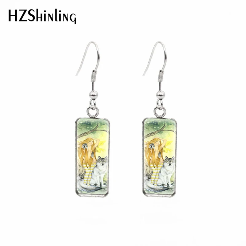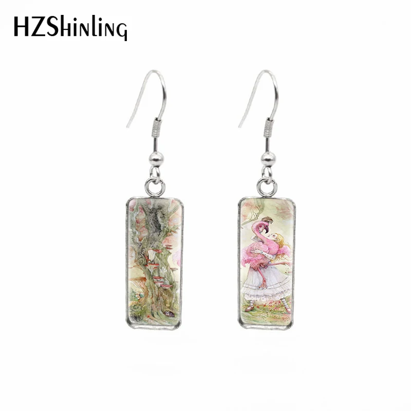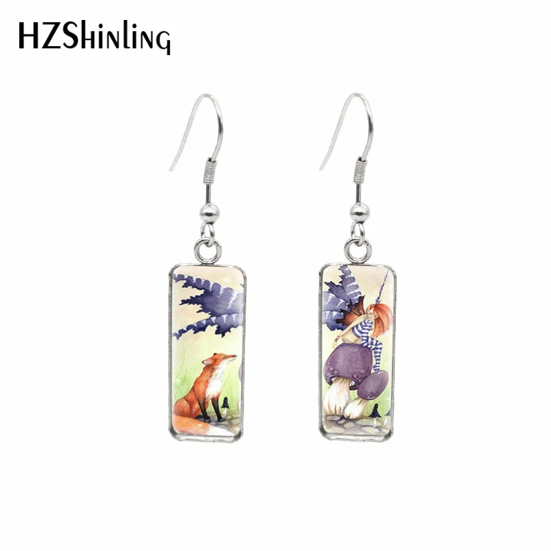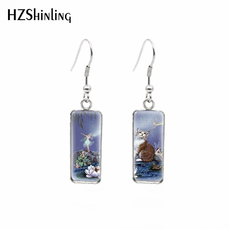 2021 новые прямоугольные серьги феи с животными, художественные картины, серьги с крючком для рыбы, стеклянный кабошон, ювелирные изделия ручной работы