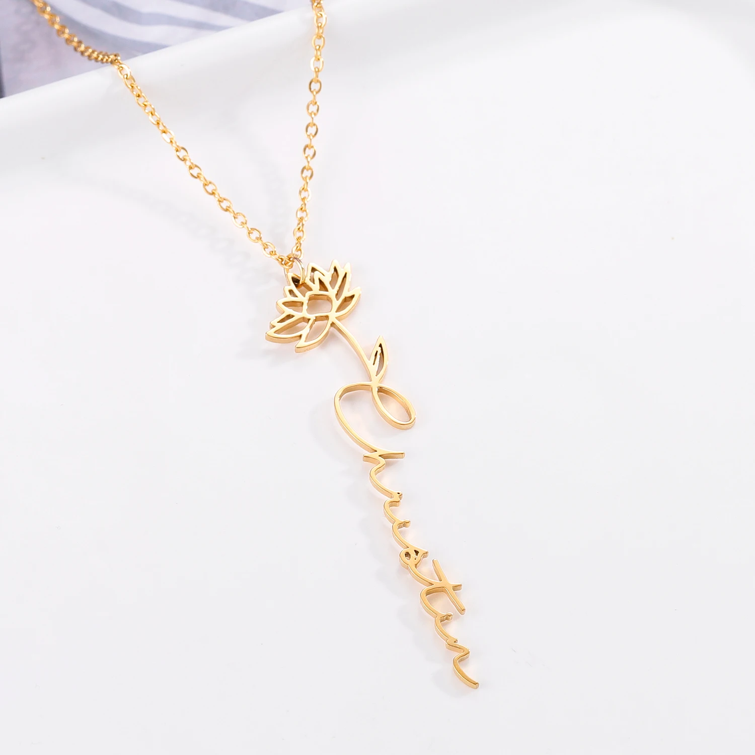 На заказ вертикальное ожерелье с именем на день рождения цветок пер...