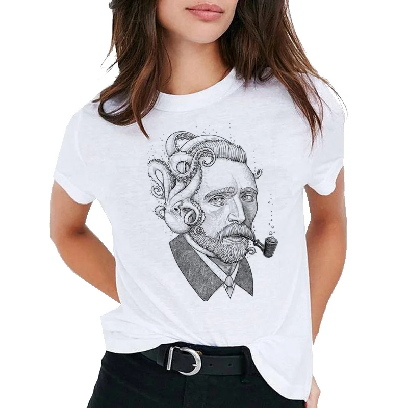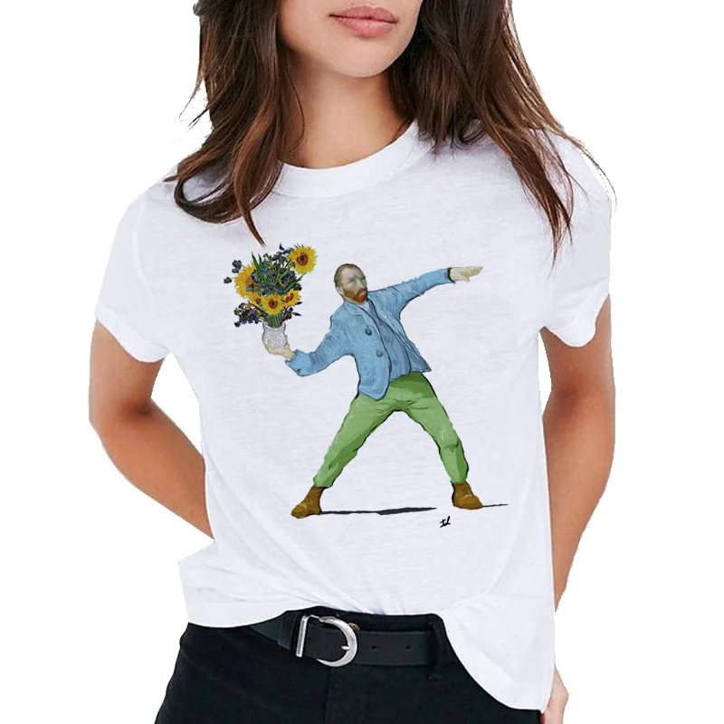 Женская футболка с принтом Ван Гога, Повседневная Уличная футболка ...