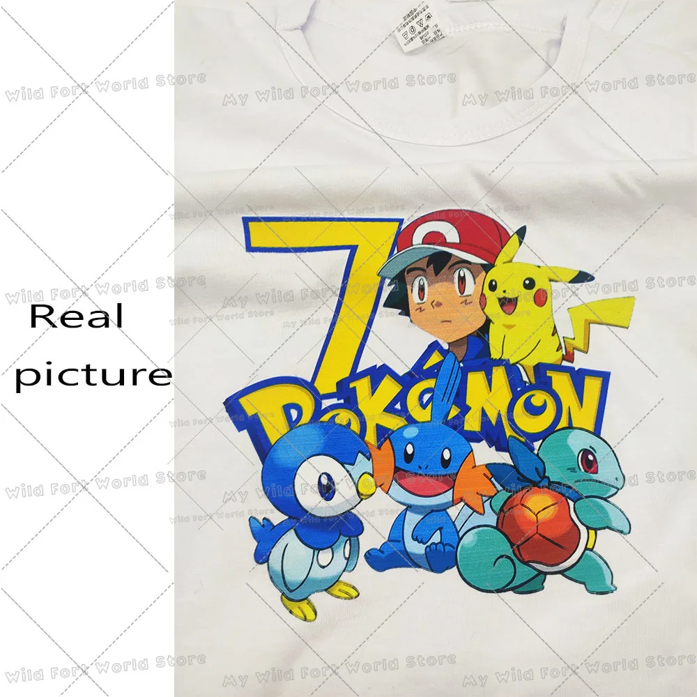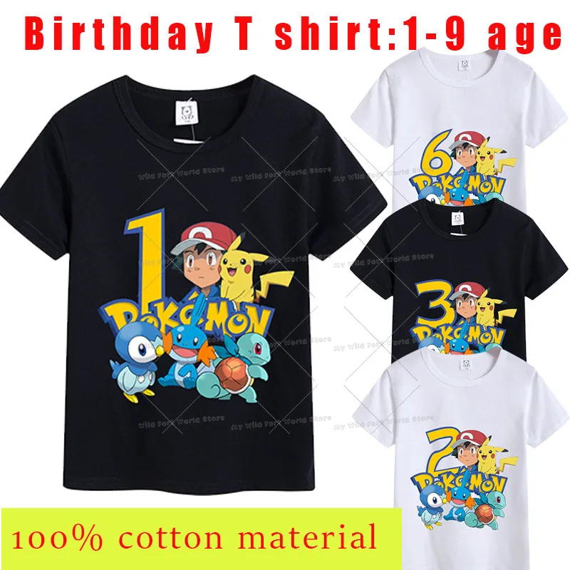 Детская одежда с покемоном, Пикачу, рубашка для младенцев на день рождения с цифрами, мультяшная фигурка, пепельный Кетчум, хлопковая футболка для мальчиков и девочек, детские летние топы