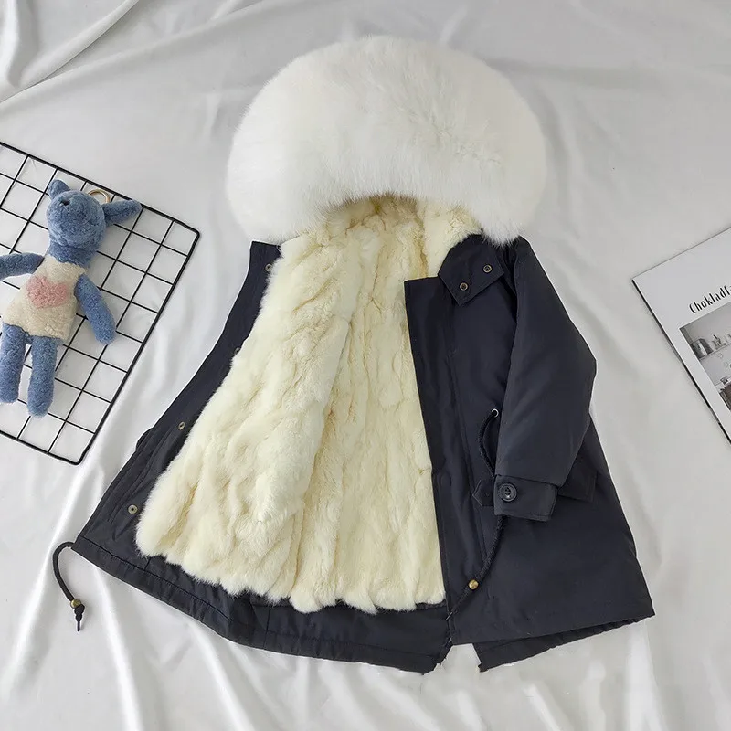 Парка зимняя со съемной подкладкой из кроличьего меха, воротником и...