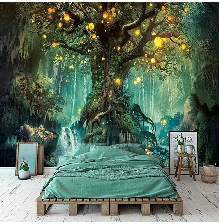3D настенная роспись любого размера, креативное священное дерево, светящийся фонарь, для гостиной, спальни, Потолочная Фреска, водонепроницаемые обои