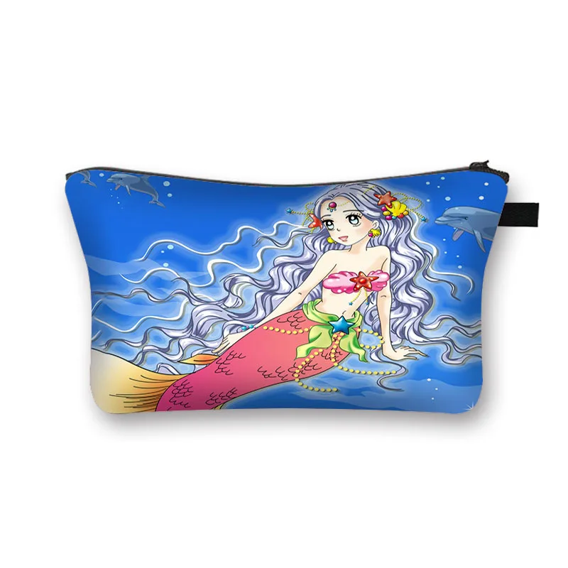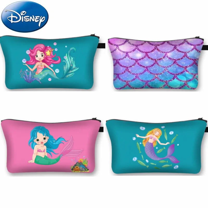 Оригинальные косметички с принтом Русалка Disney, женская модная Водонепроницаемая мини-сумка для хранения с рисунком русалки, Детские пеналы для девочек