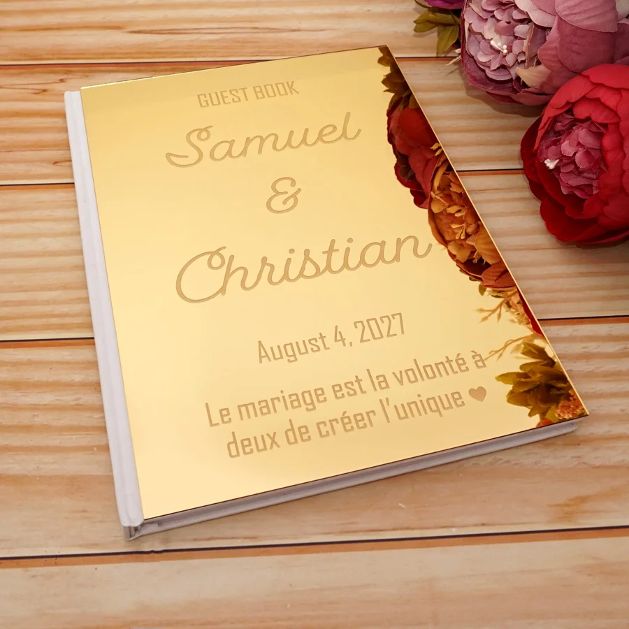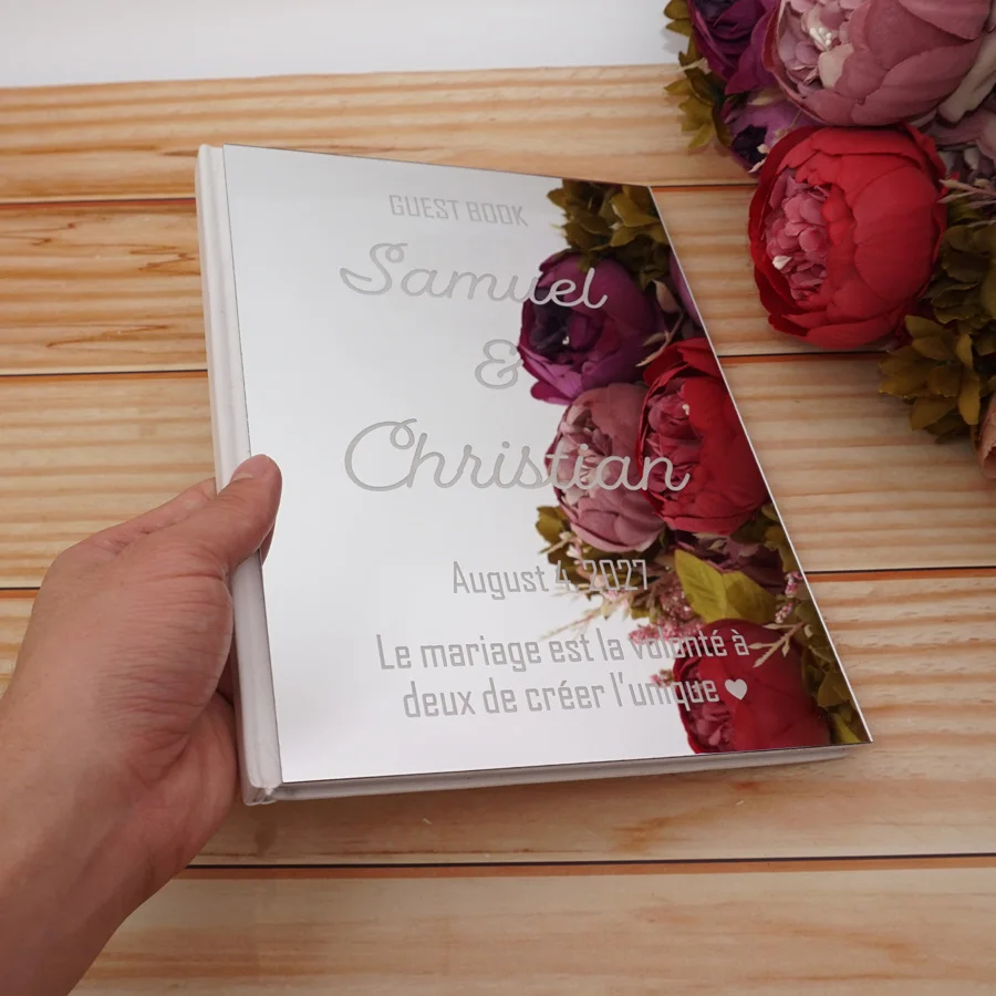 Индивидуальная Свадебная книга для гостей, акриловая зеркальная Обложка, книги для подписей, индивидуальный сувенир для невесты и жениха на помолвку, декор для вечеринки