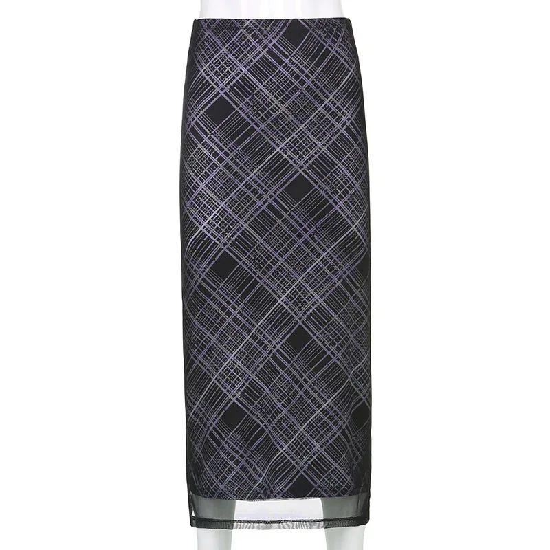 Gitana 2021 Осень Фея Гранж Длинные Юбки Женщины Каваи Клетчатая Черная Юбка Миди Harajuku Юбка с Низкой Талией Корейская Мода