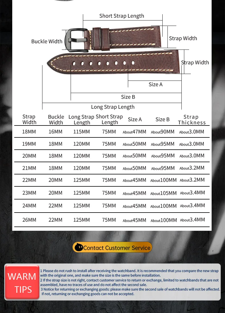 Ремешок для часов MAIKES кожаный ремешок для часов ручной работы, 2...