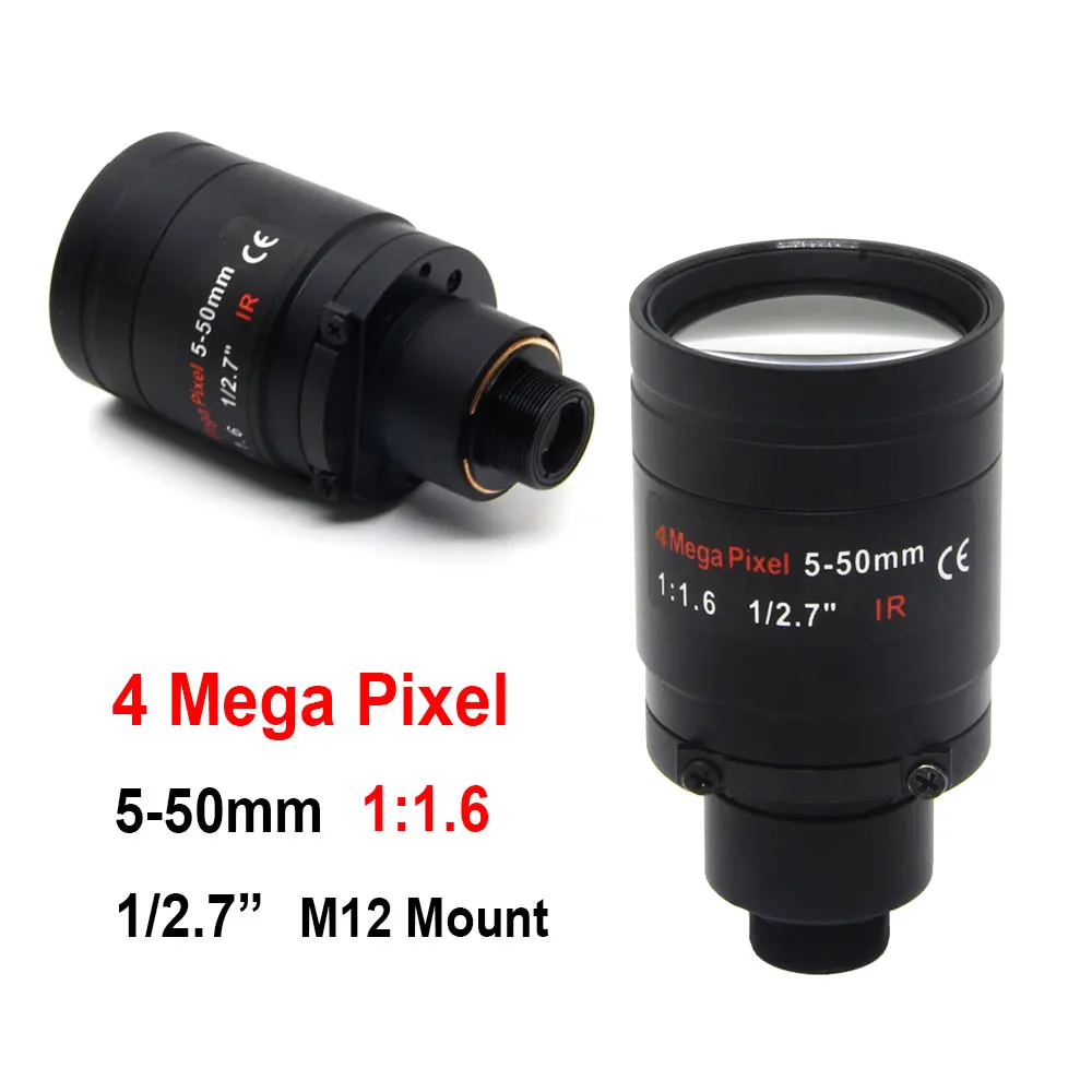 Объектив видеонаблюдения, 4-мегапиксельная варифокальная линза, 5-50 мм, M12, для камеры HD IPAHD, наблюдение на большие расстояния 112 дюйма, ручная фокусировка и зум
