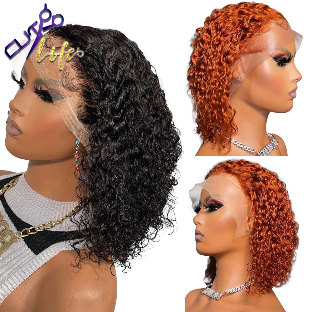Парик с кудрявым Бобом, парик из человеческих волос с эффектом омбре, парик с водной волной, имбирный парик без клея с детскими волосами для черных женщин