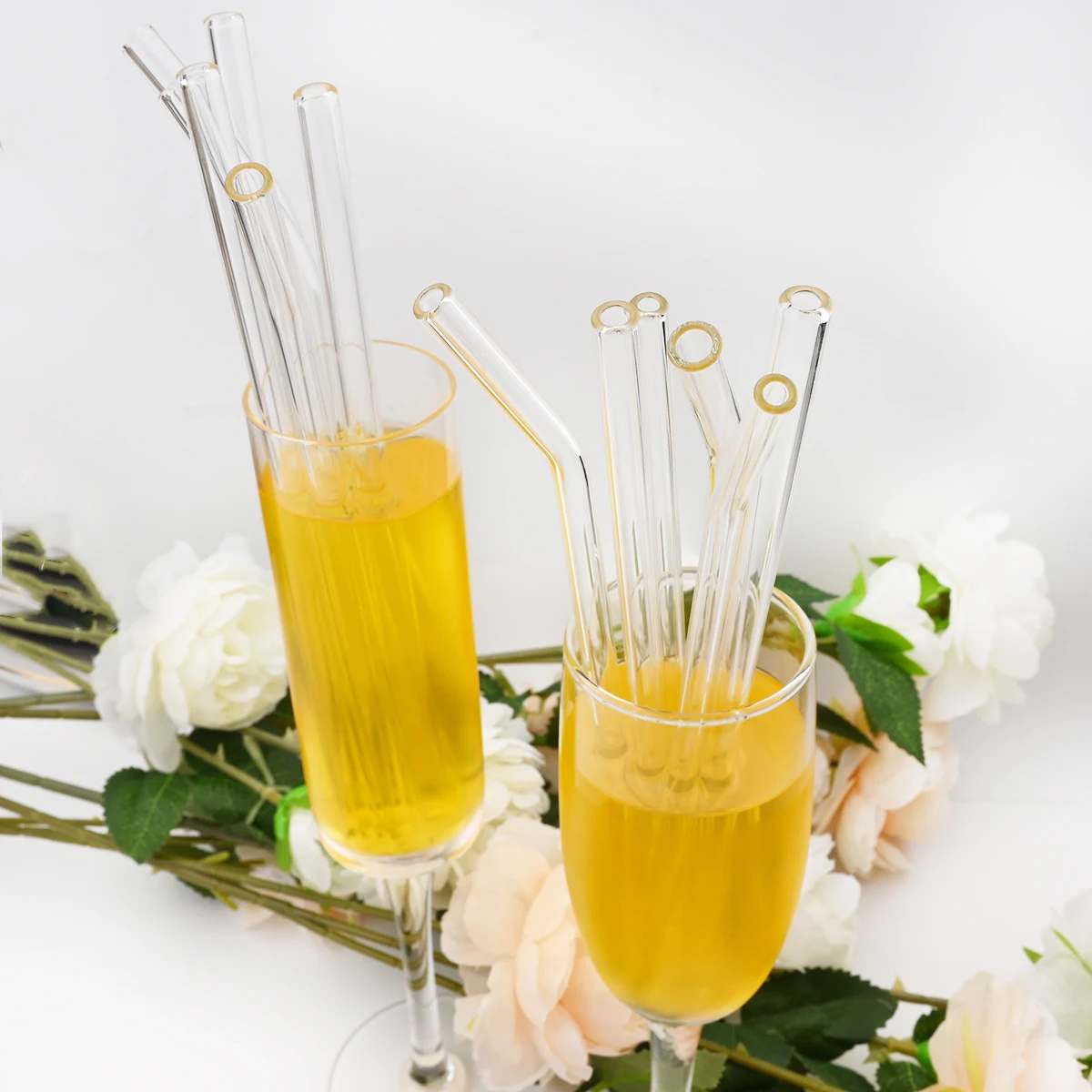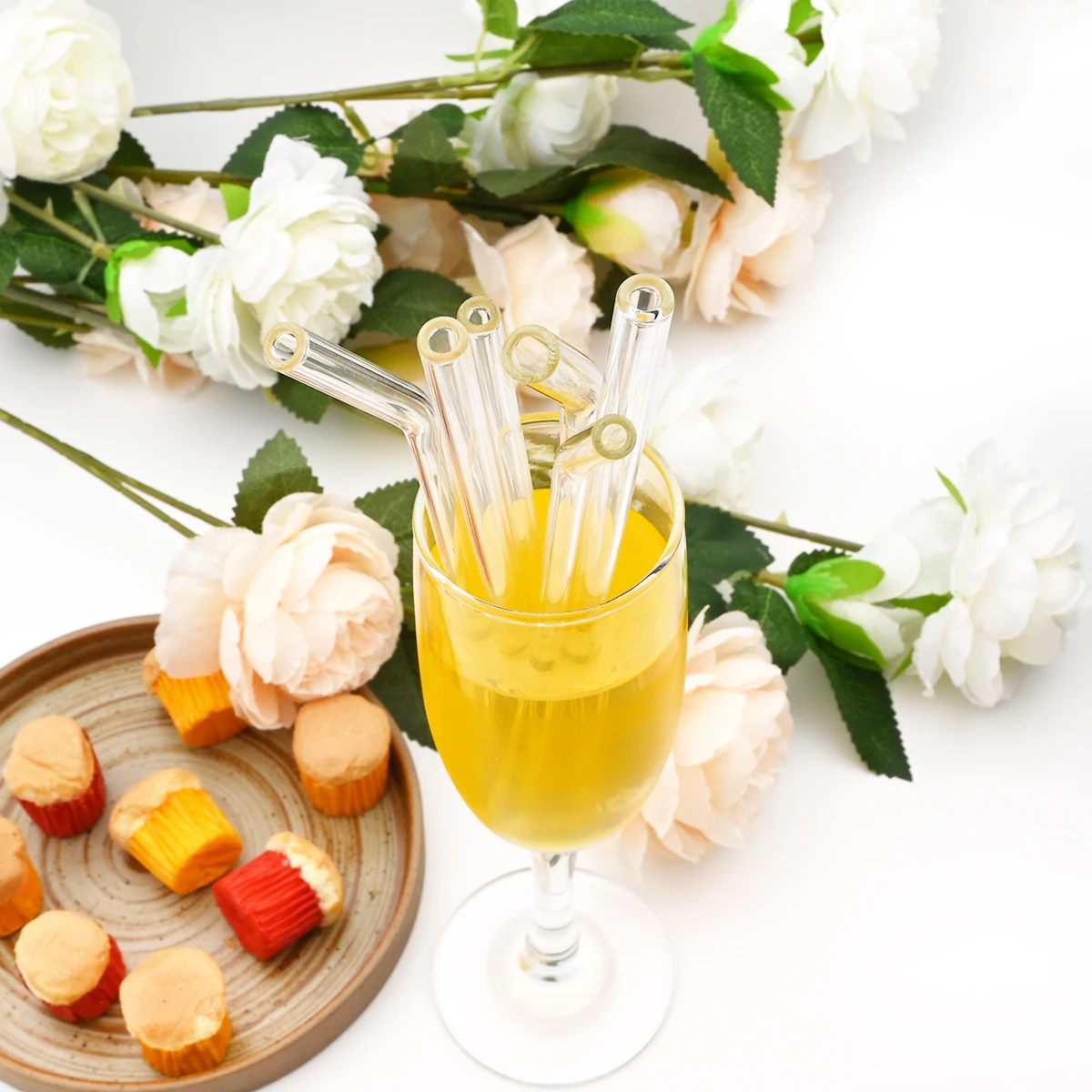 Питьевая солома изготовлена из высокоборосиликатного стекла, нетоксичного и безвкусного, коррозионной стойкости, без ржавчины, без металлического привкуса, здоровья и безопасности. Подходит для напитков, чая, сока и т. д. посудомоечная машина безопасная, многоразовая и экологически чистая.