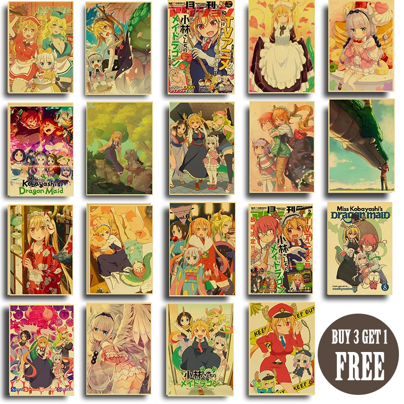 Винтажная аниме серия Кобаяши Дракон горничная ретро крафт-бумага плакат для настенного искусства домашний декор картины для гостиной
