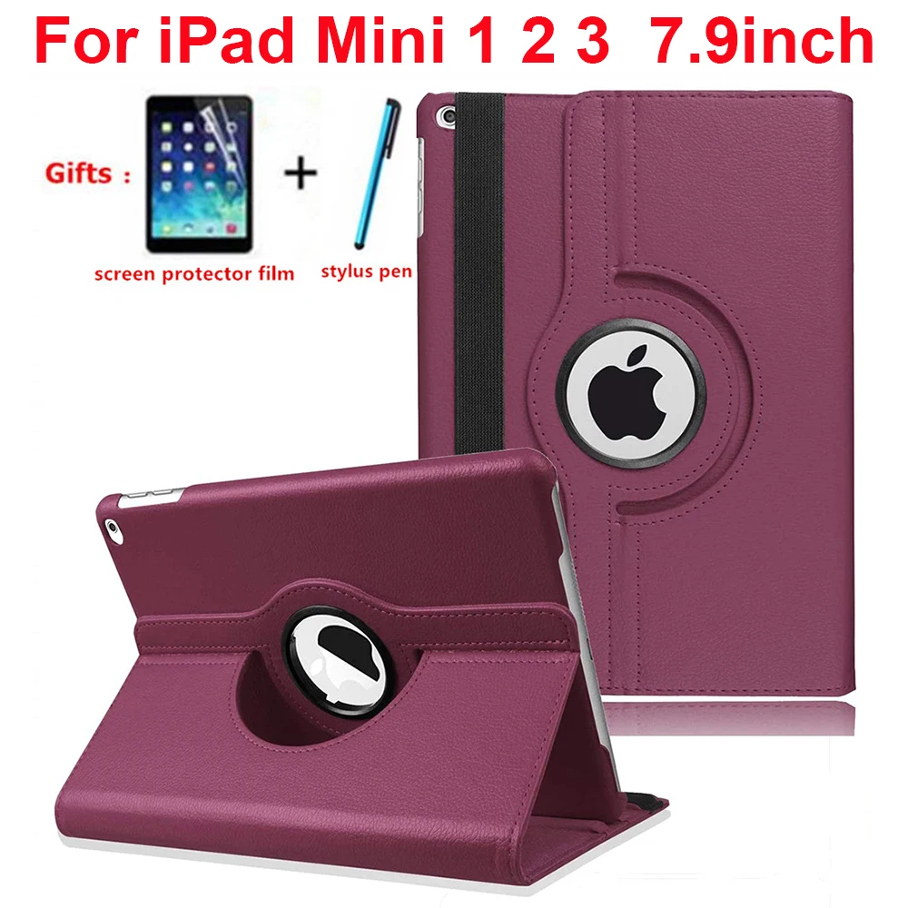 Вращающийся на 360 градусов чехол-подставка для iPad Mini 1 2 3 7,9 ''чехол из искусственной кожи умный флип-чехол для Funda iPad Mini чехол для сна/пробужденияХарактеристики продукта:* 100% новые чехлы.* Прочный и моющийся.* Изготовлен из высококачественного материала.* Защитите от пыли, царапин и ударов* Модный дизайн, легко надевается и легко снимается* Умный чехол, близкий к сну, открытый для пробуждения.Совместимость:Для ipad Mini 1 2 3(A1432 A1454 A1455 A1489 A1490 A1491 A1599 A1600)Посылка включает в себя:1 х защитный чехолСтилус-1 шт.1 x Мягкая экранная пленка