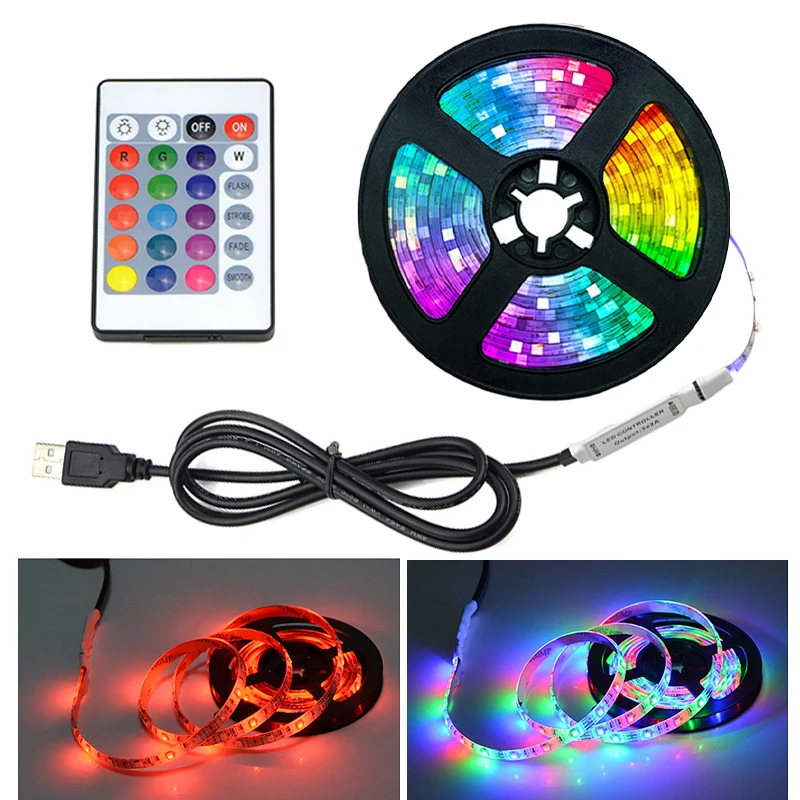 Светодиодная лента с изменением цвета, гибкая лампа с USB-управлением, подсветка для телевизора, ночник, декор для комнаты, 8 цветов
