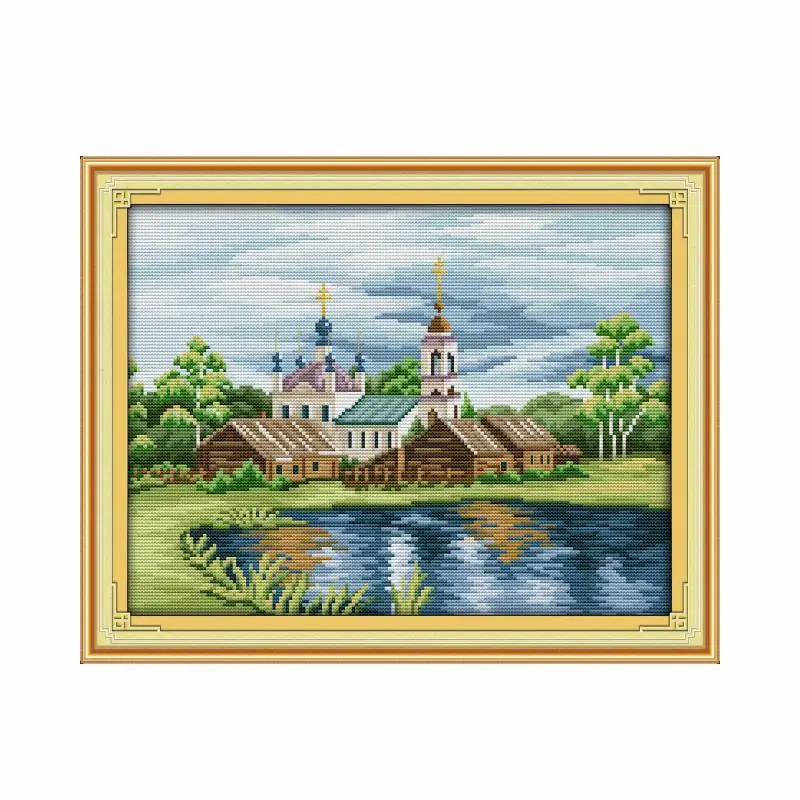 Набор для вышивки крестиком Joy Sunday, красочный дом у воды, 14CT,...