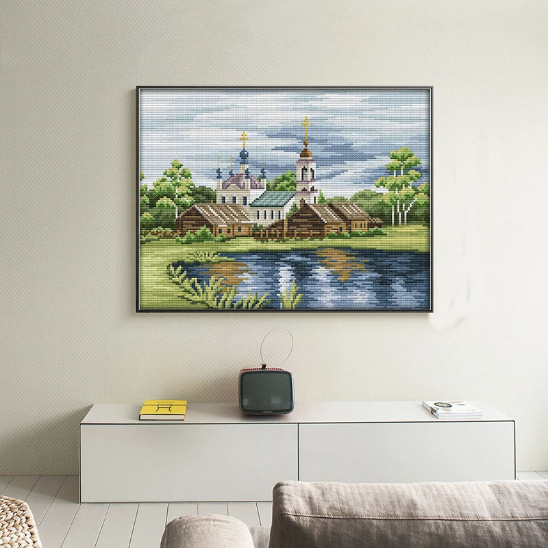 Наборы для вышивки крестиком, с принтом на пружине, до берега озера...