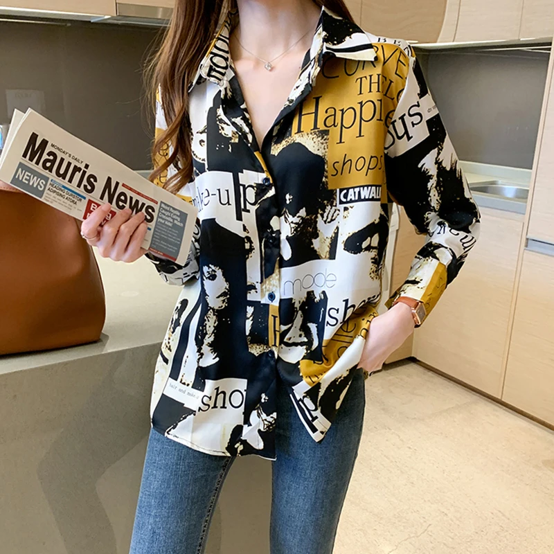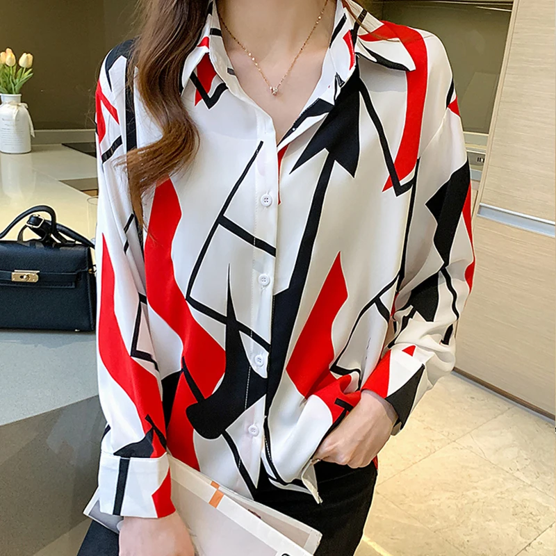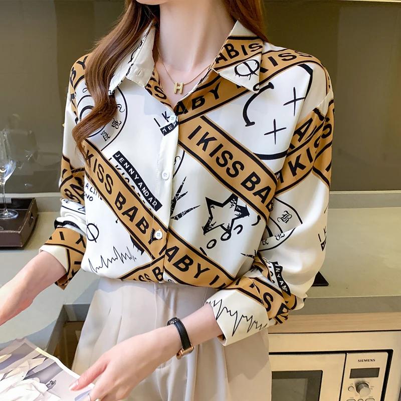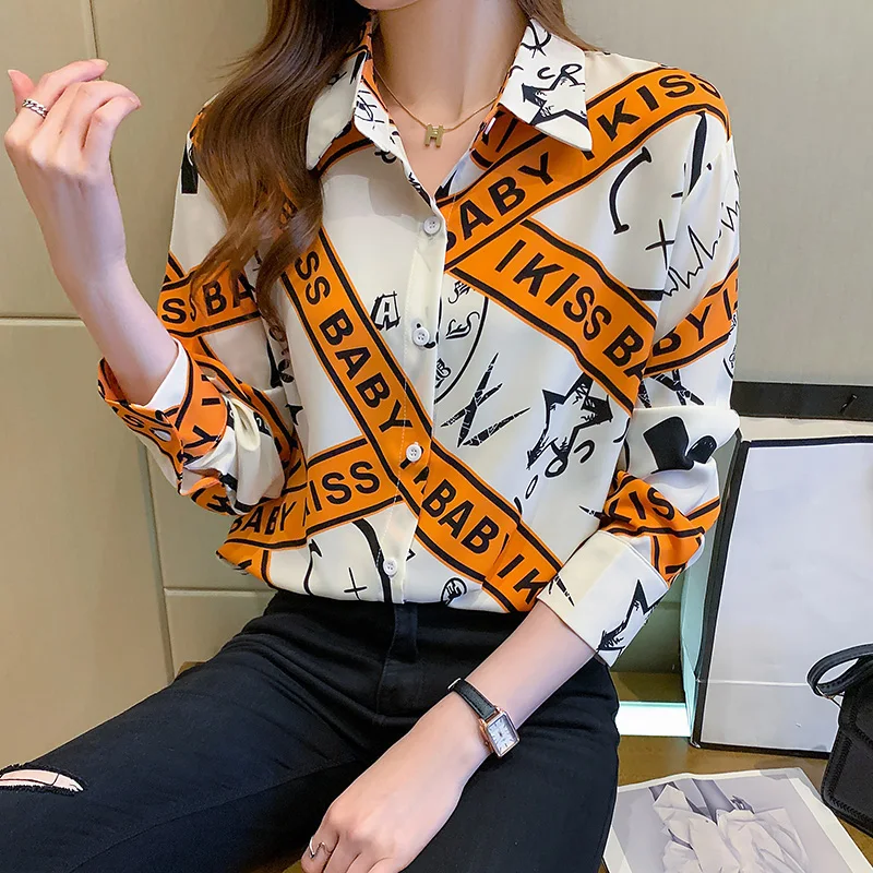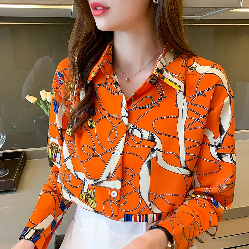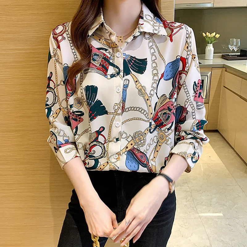 Модные женские рубашки с принтом цепей, женские блузки, весна-осень...