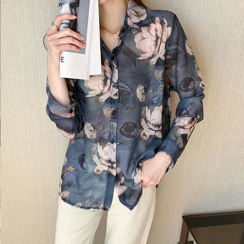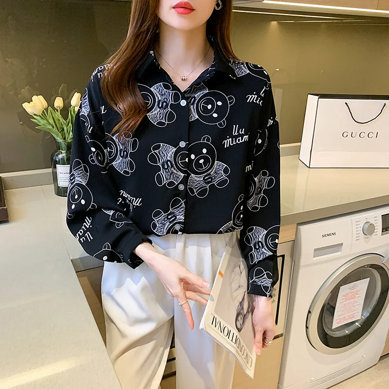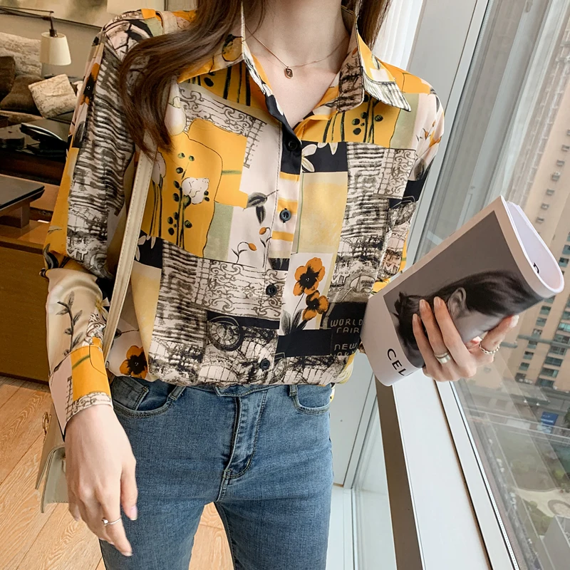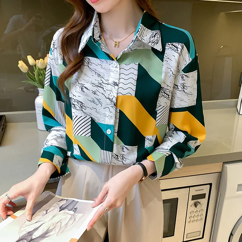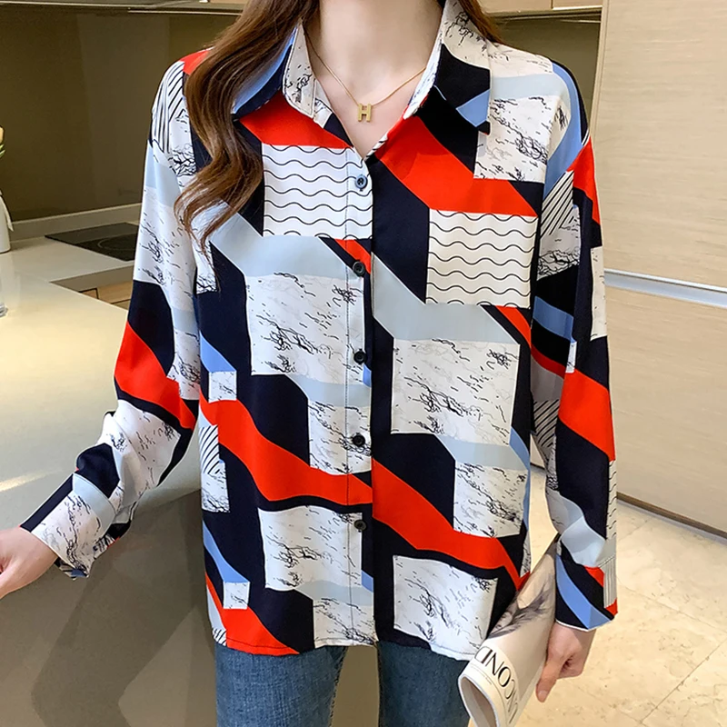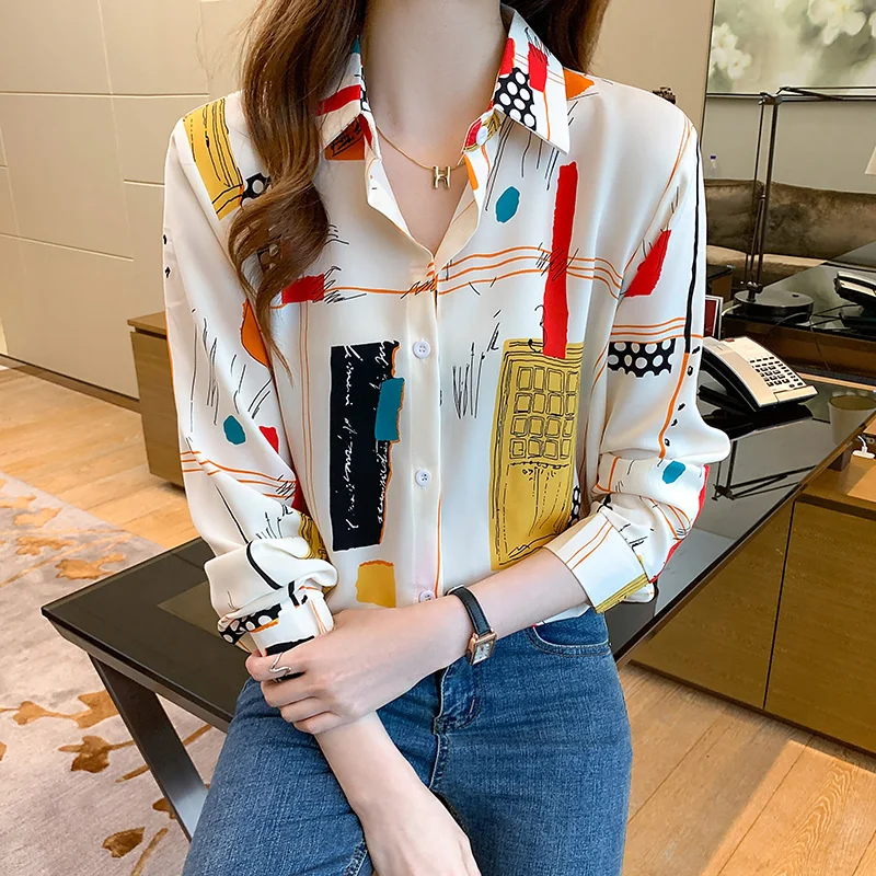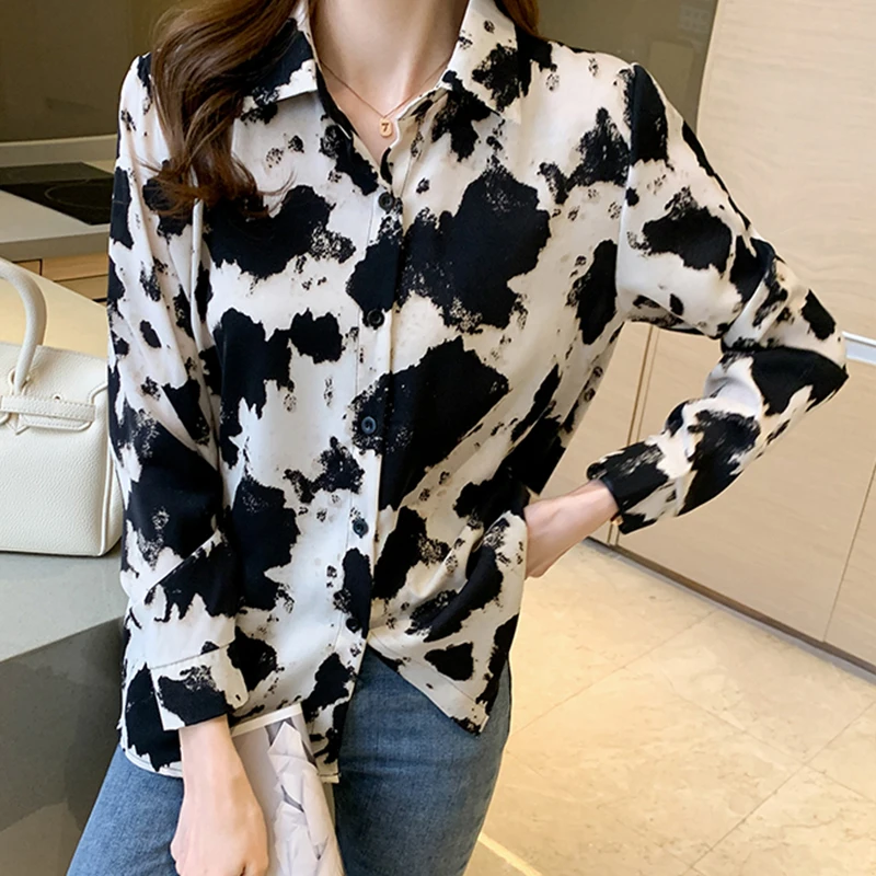 Модные женские рубашки с принтом цепей, женские блузки, весна-осень...