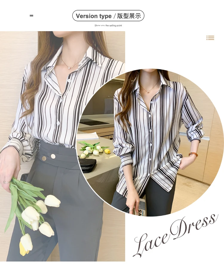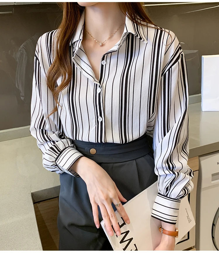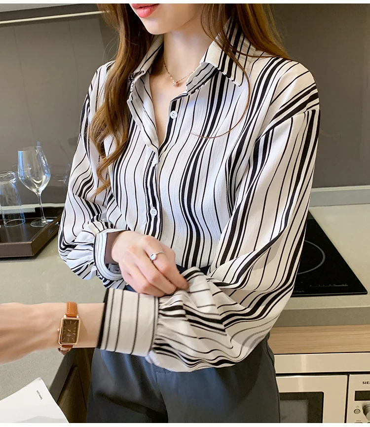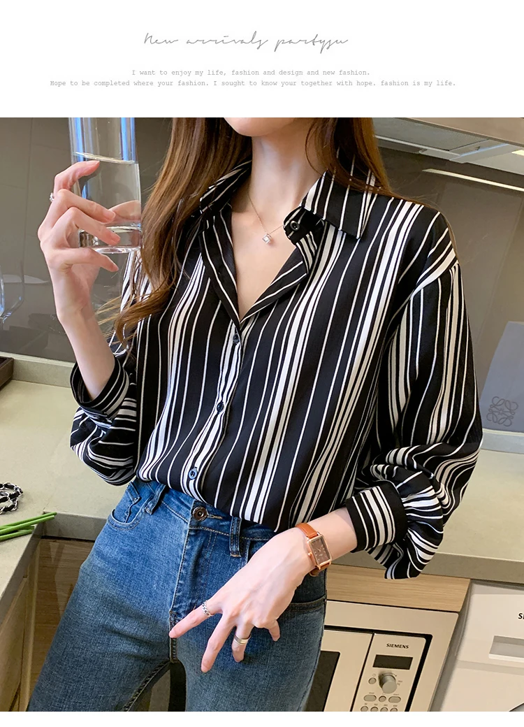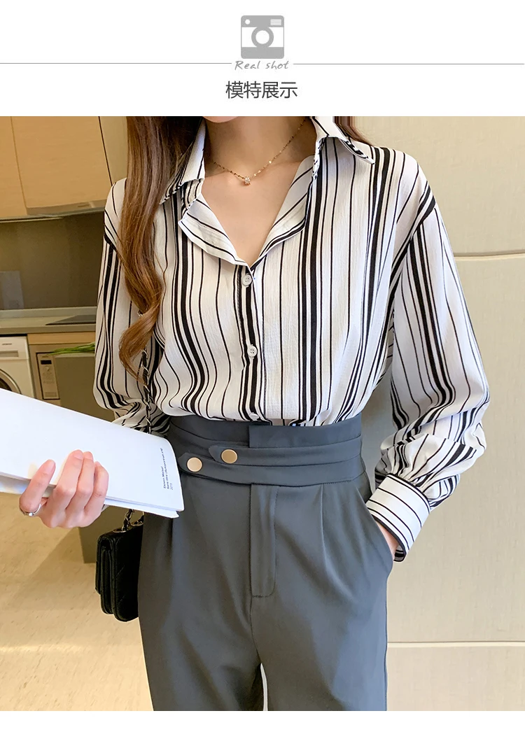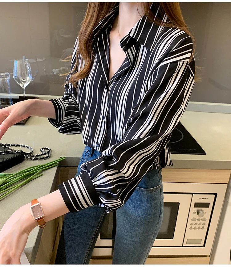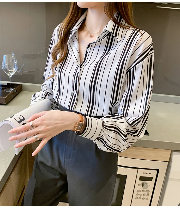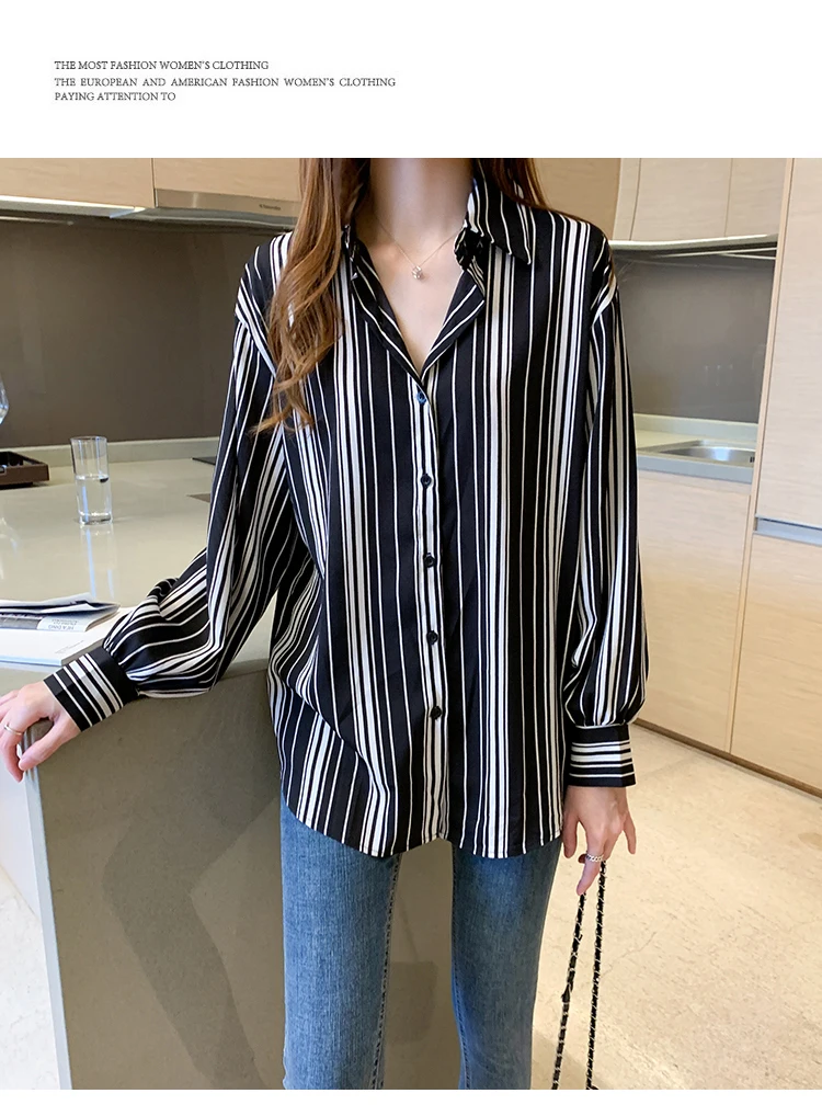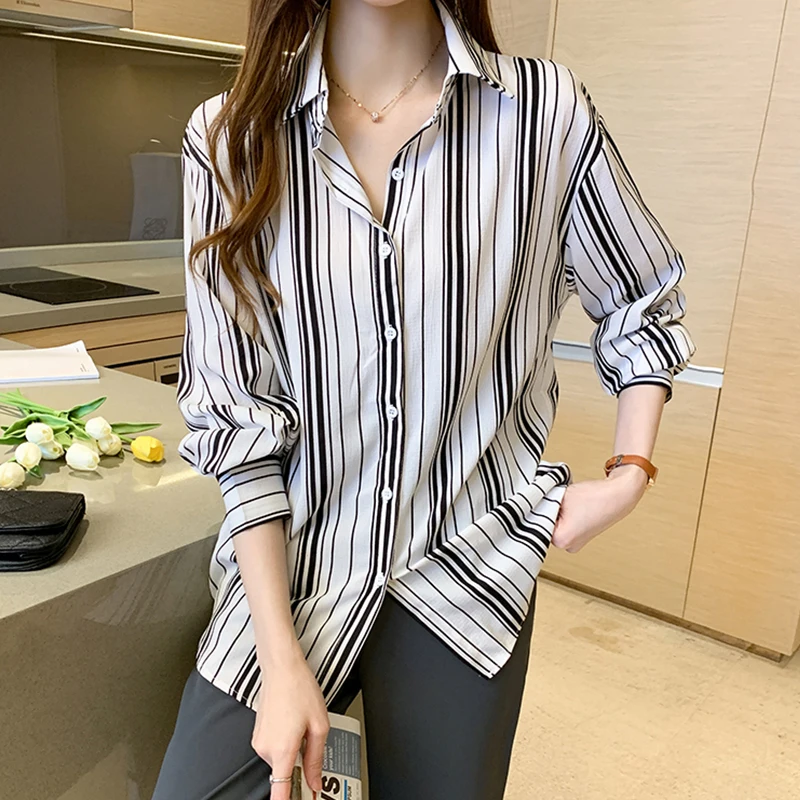 Модные женские рубашки в полоску с принтом, женские блузки, сезон весна-осень 2021, рубашки с длинным рукавом, топы, женские блузы