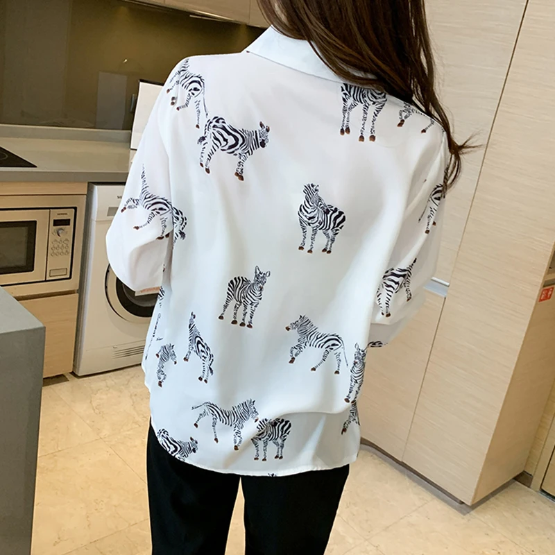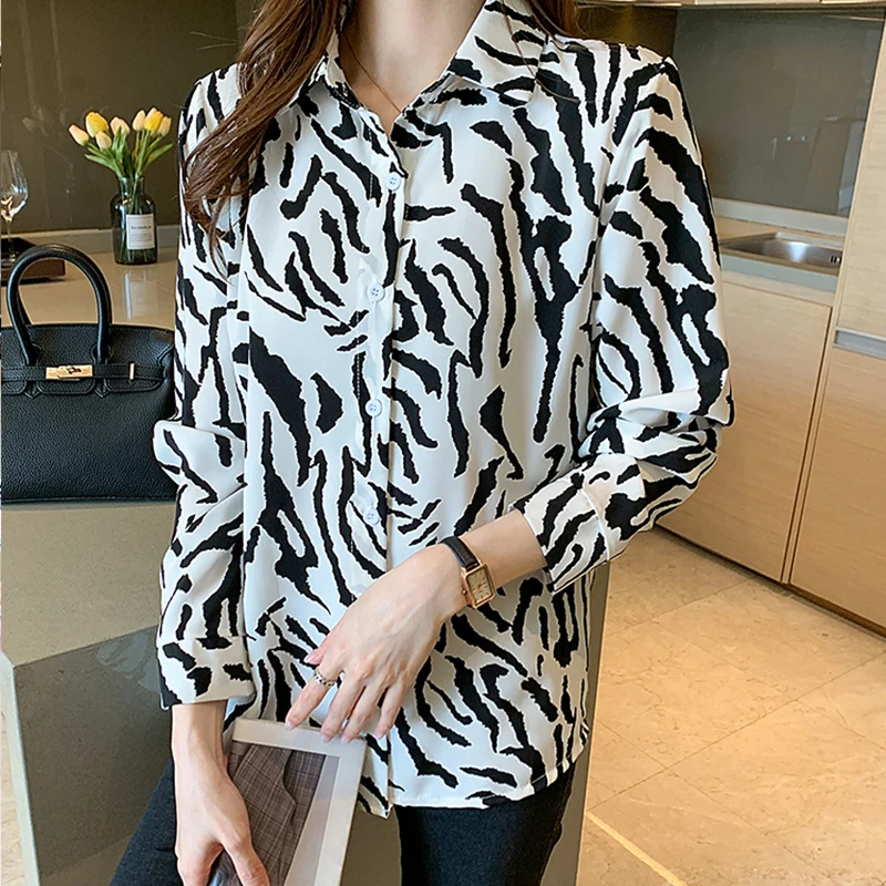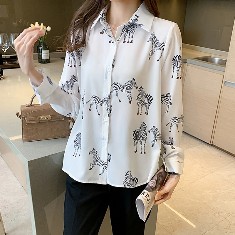 Модные женские рубашки с принтом зебры, женские блузки, весна-осень...