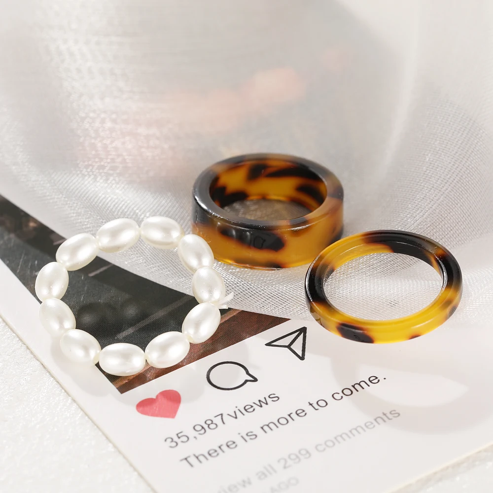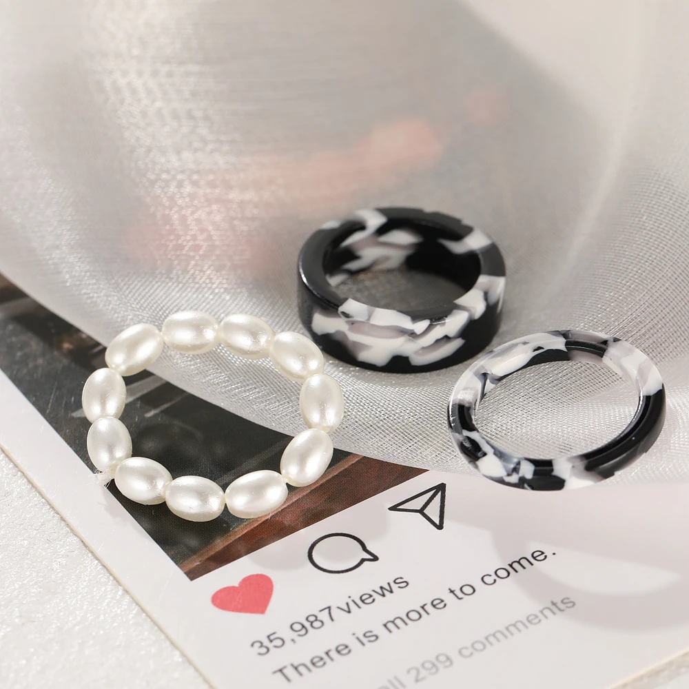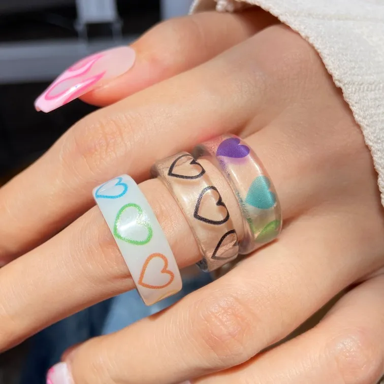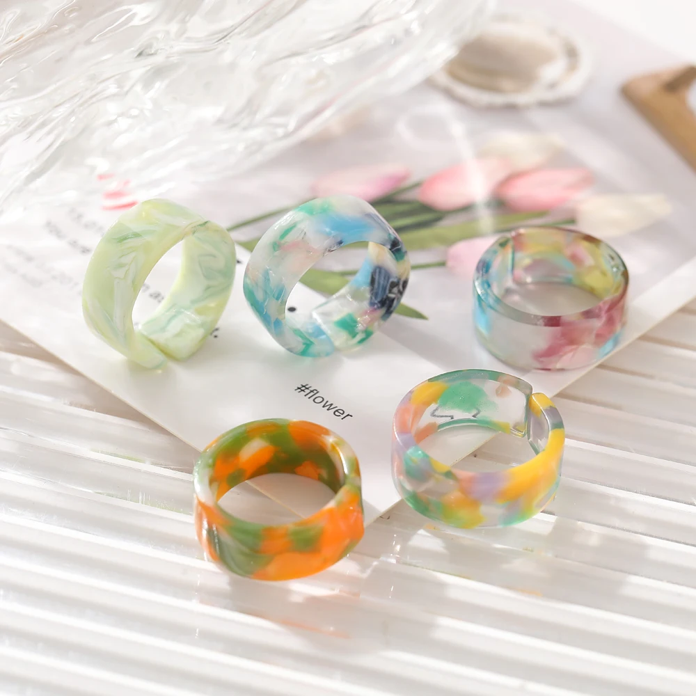 Комплект женских колец из акриловой смолы, простые толстые розовые ...