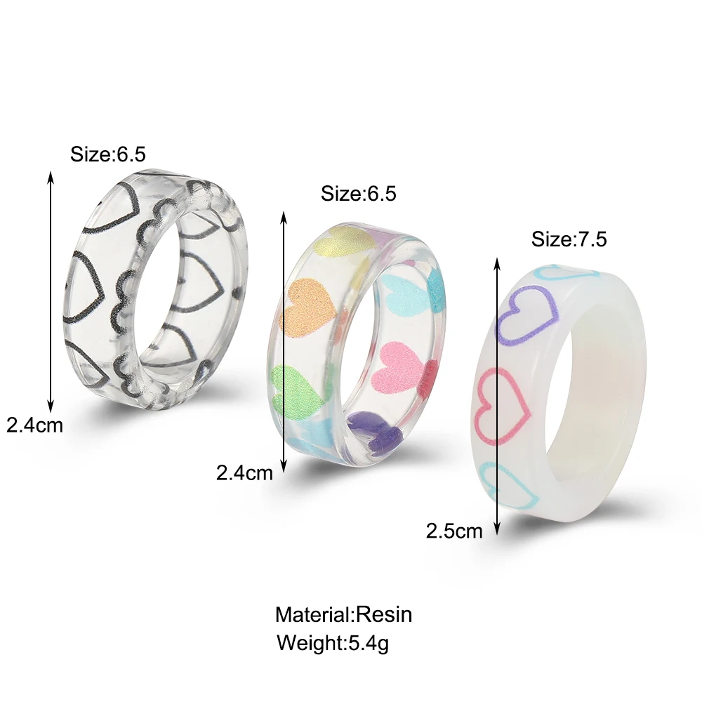Кольцо женское круглое, из смолы, Y2k, 3 шт.