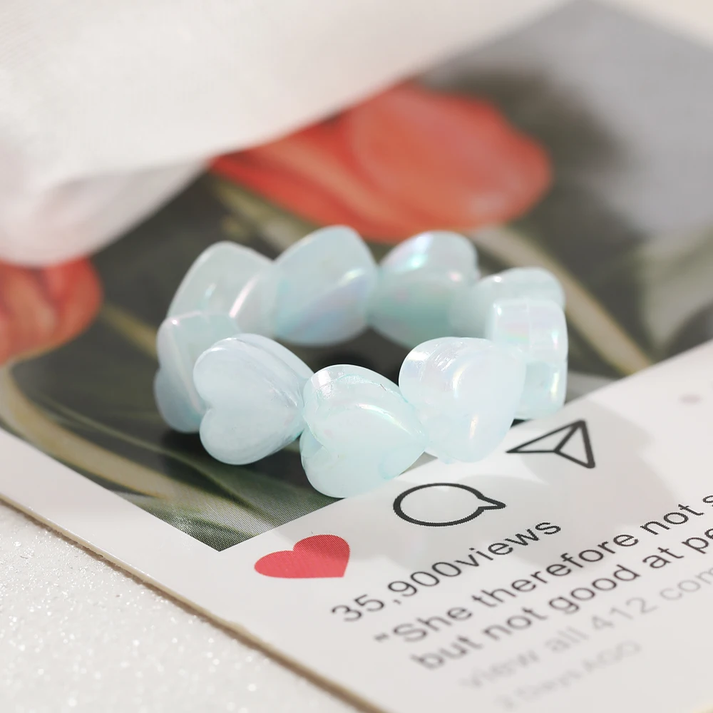 Модное кольцо с красочным сердцем Корейская версия кольцо с бусинам...