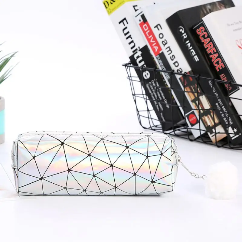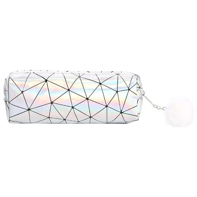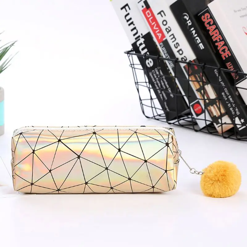 Новинка 2021, голографический переливающийся чехол для карандашей для девочек, милый Пенал для карандашей, Пенал для карандашей с помпоном