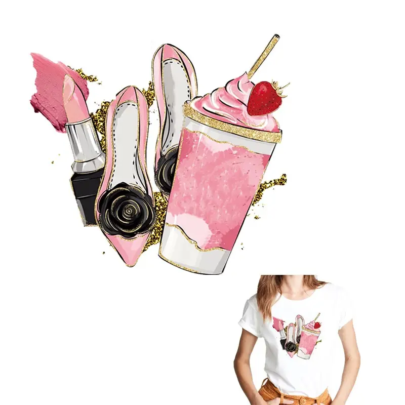 Термонаклейка для женской одежды, моющаяся, в виде мороженого, губной помады