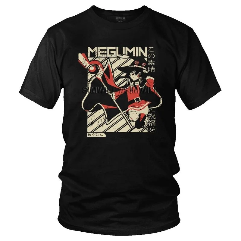 Футболка Megumin Kono Subarashii, Мужская хлопковая футболка с принтом Футболка "Манга", футболка с короткими рукавами и рисунком аниме