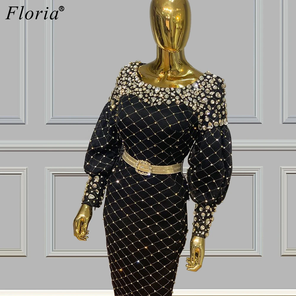 Элегантное женское черное платье для выпускного вечера длиной ниже колена с круглым вырезом и длинным рукавом Вечерние коктейльные платья африканские платья