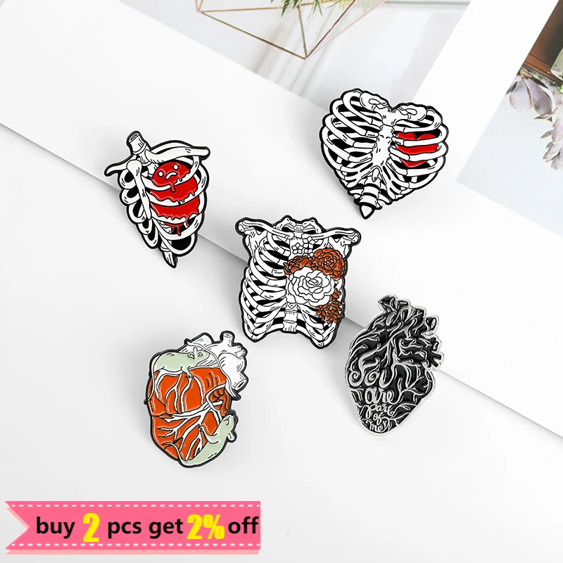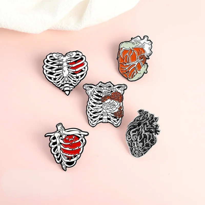 Эмалированные заколки в форме сердца и скелета, анатомические броши в виде грудины для врачей и медсестер, заколка в стиле панк и готика на лацкан, значок, Подарочная бижутерия, оптовая продажа