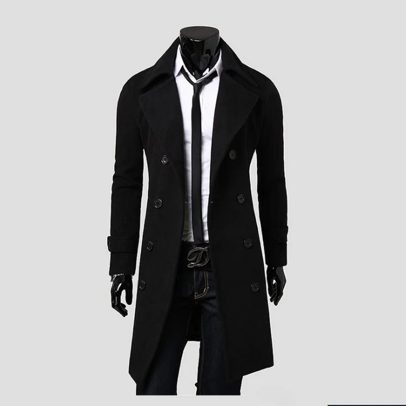 Осенне-зимнее длинное двубортное пальто мужское шерстяное пальто от...