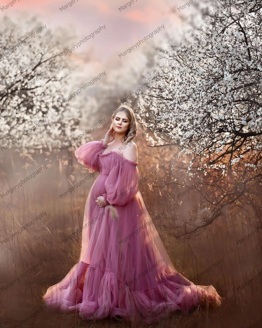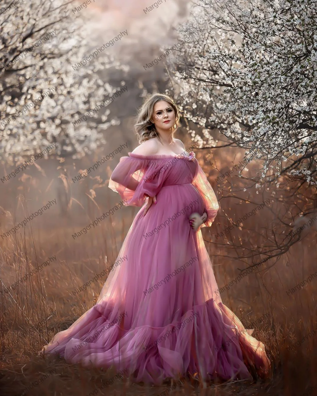 Шикарные тюлевые платья для беременных с жемчужинами пышные рукава ...