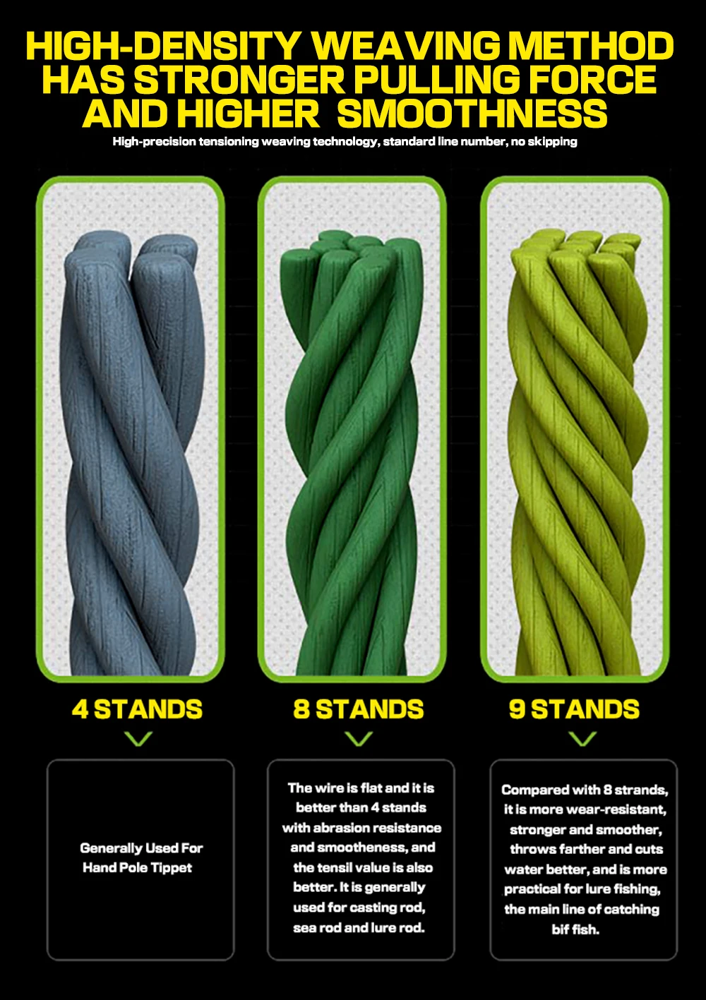 Рыболовная леска GHOTDA, 9 нитей, Полиэтиленовая оплетка, устойчива...