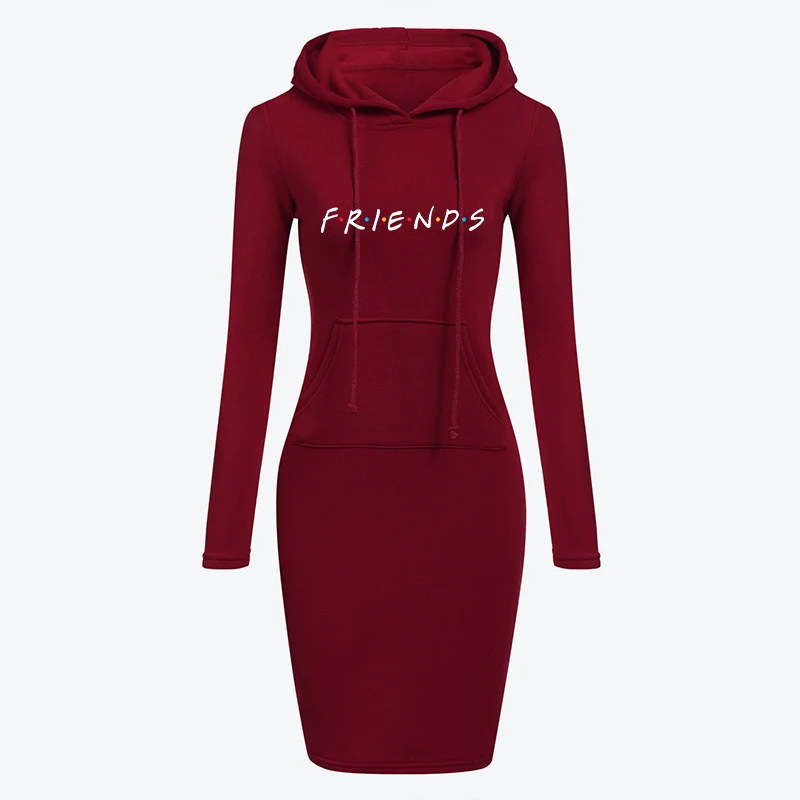 Женское теплое платье с карманами, повседневное однотонное винтажное платье с принтом, Длинное Элегантное платье с капюшоном для друзей, осень-весна 2021