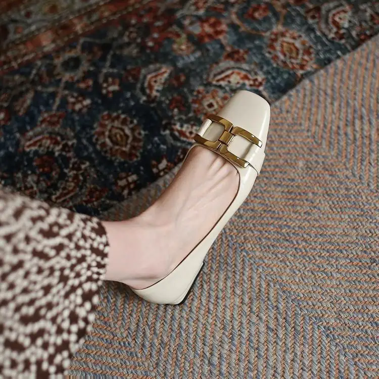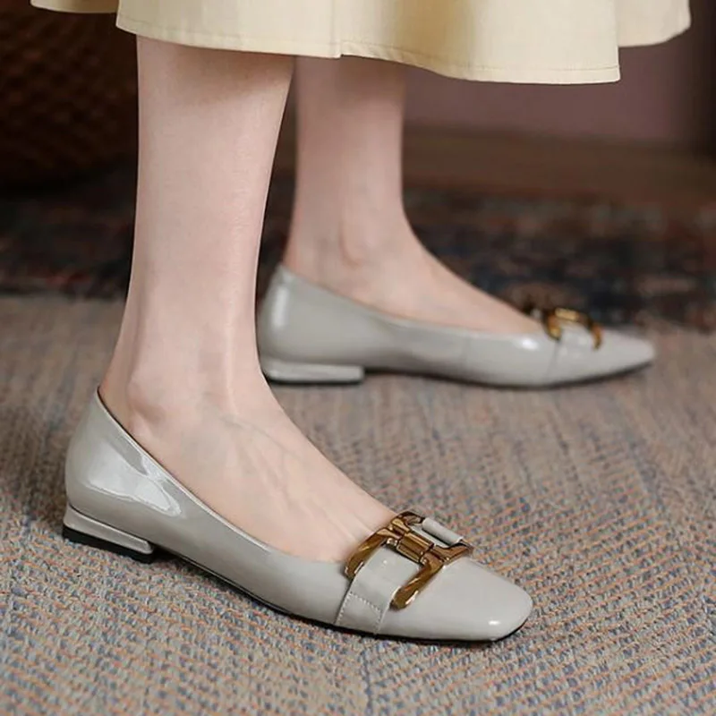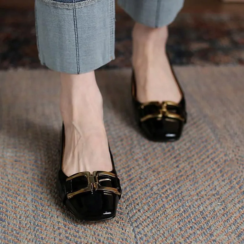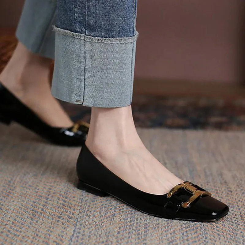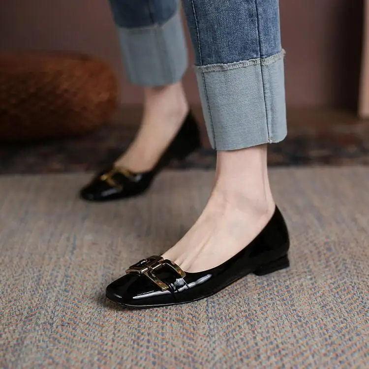 Туфли-лодочки женские из лакированной кожи, плоская подошва, квадратный носок, без застежки, классические лоферы, 9380N, весна-осень