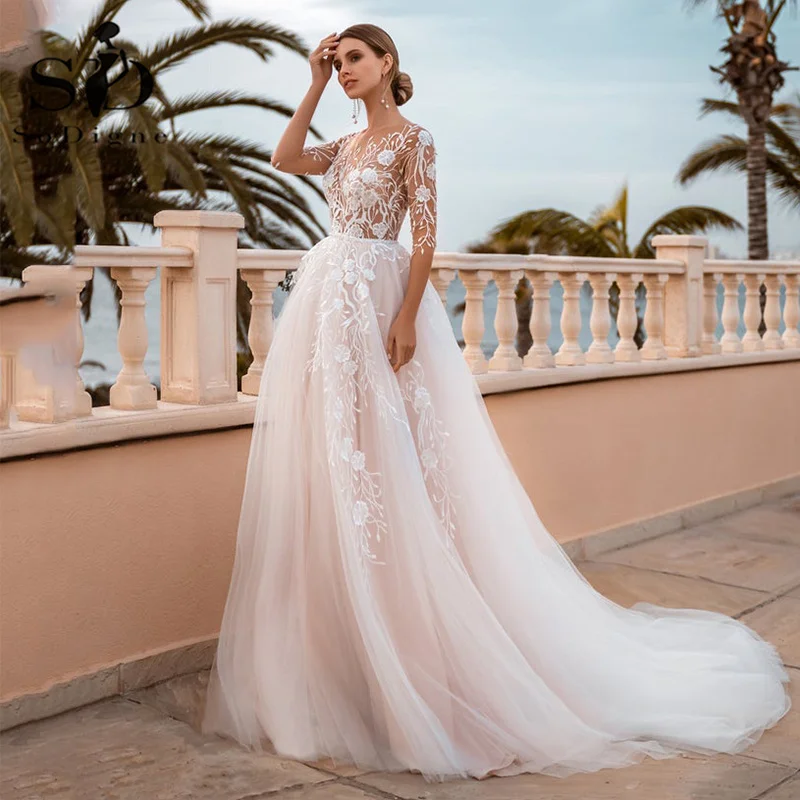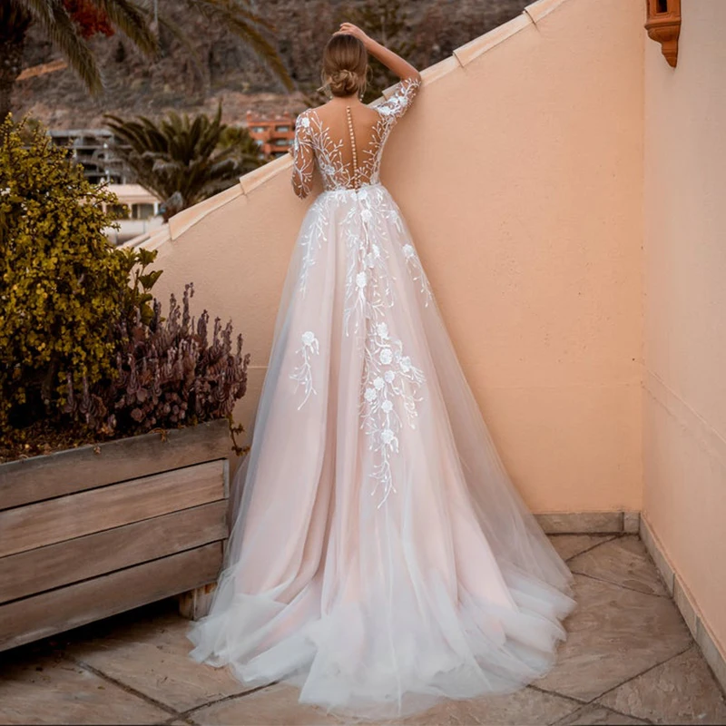 Современное летнее свадебное платье soworthy, розовые кружевные свадебные платья с длинными рукавами для принцессы, свадебное платье на заказ