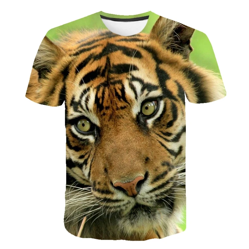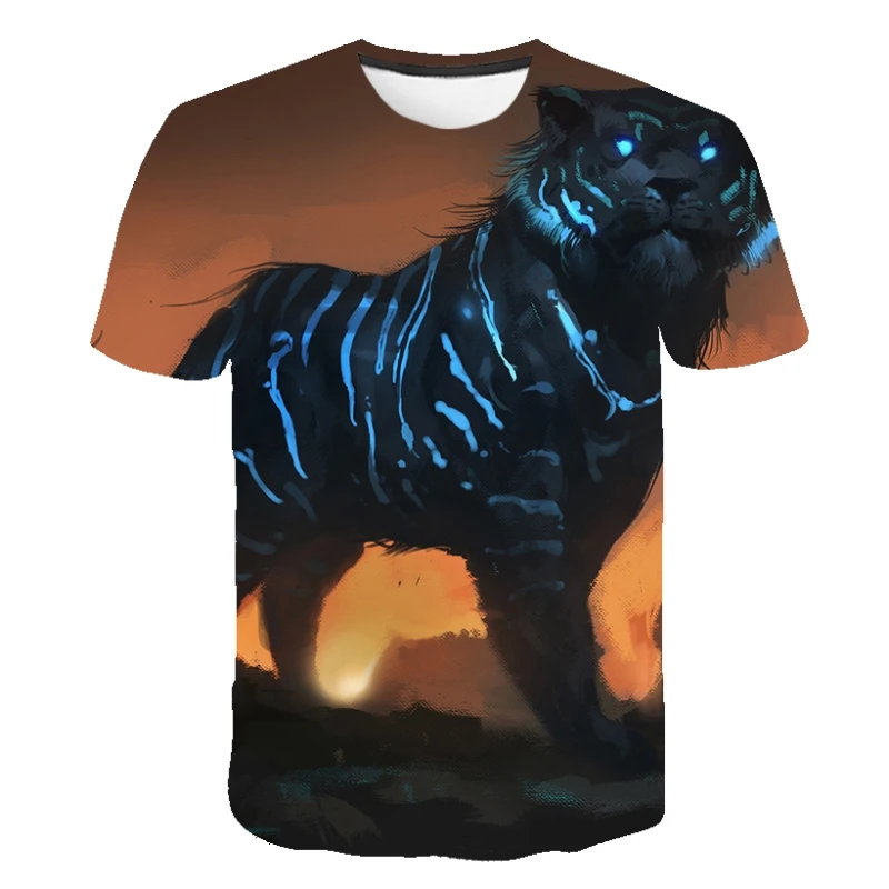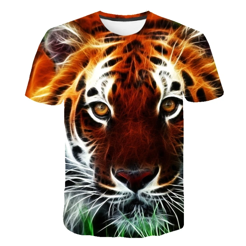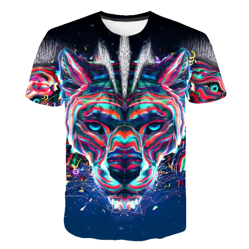 Футболка мужская с принтом тигра и страшного аниме с коротким рукавом