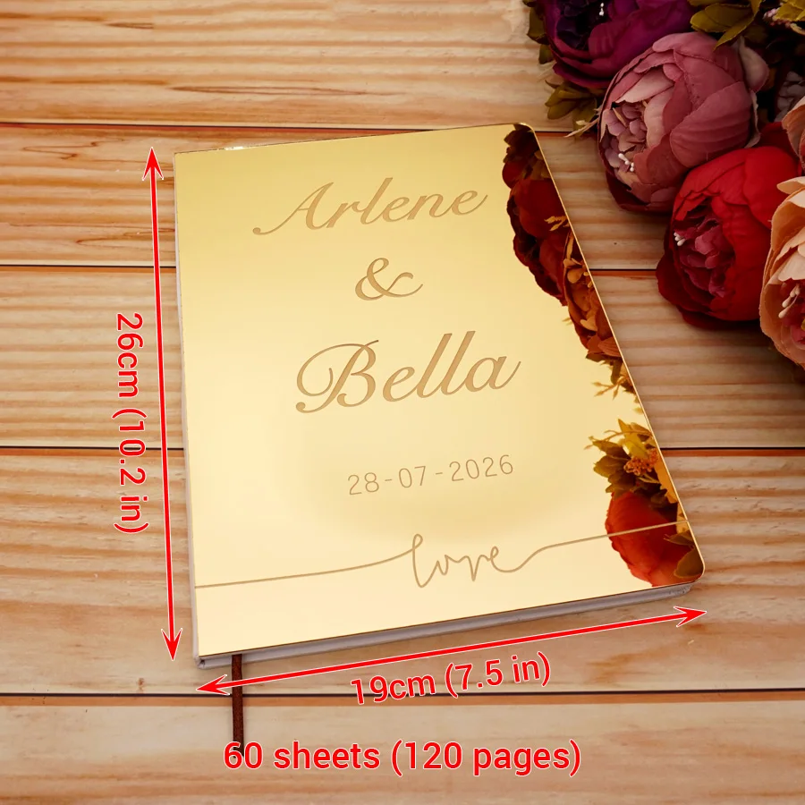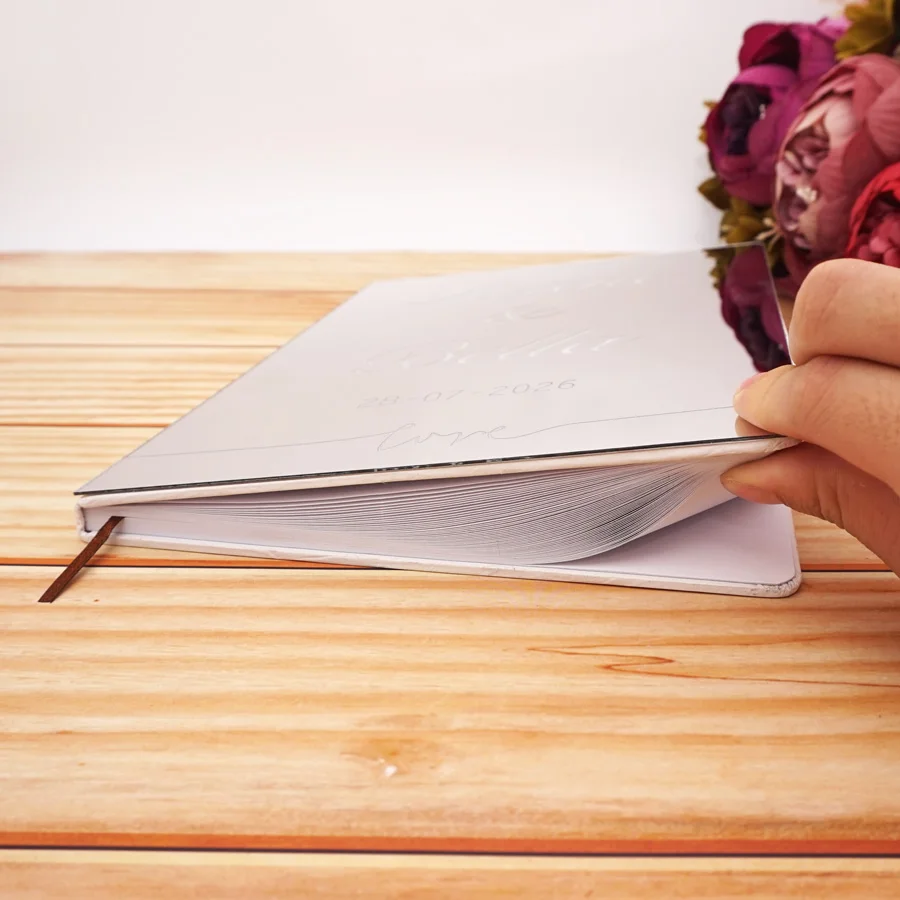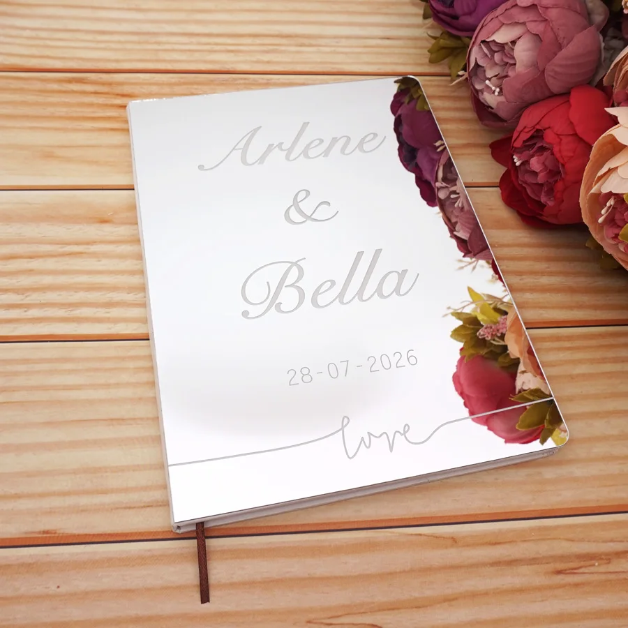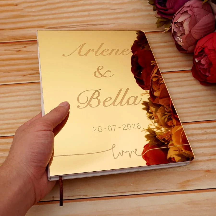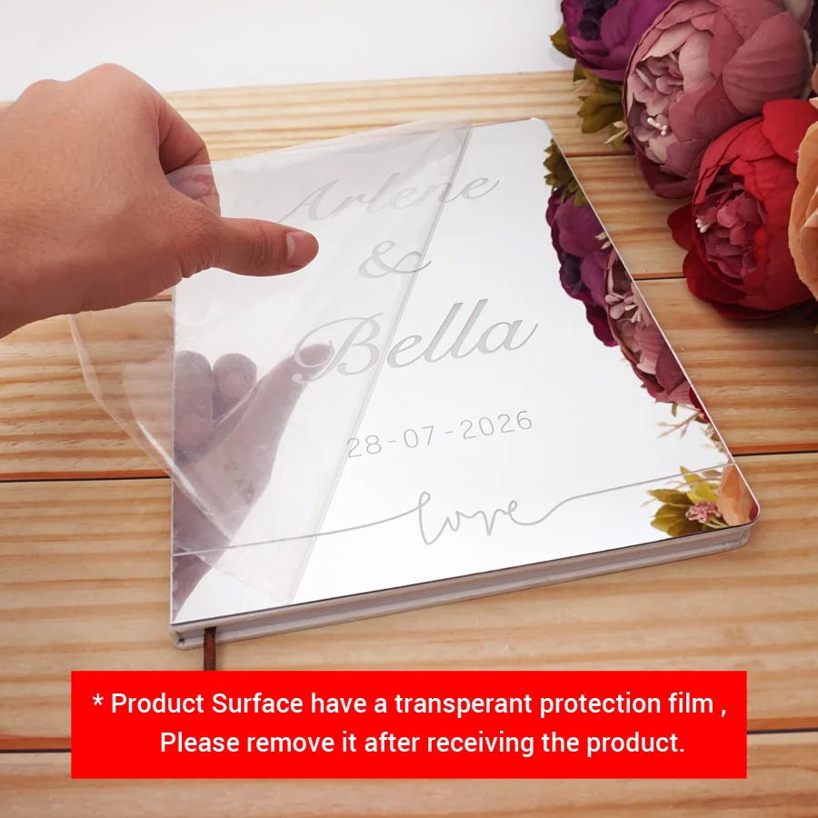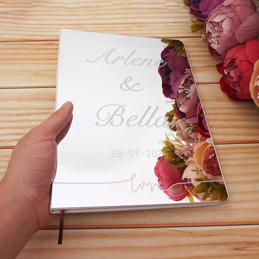 Акриловая Гостевая книга с зеркальным покрытием, для свадьбы, с чистым листом, с именем на заказ
