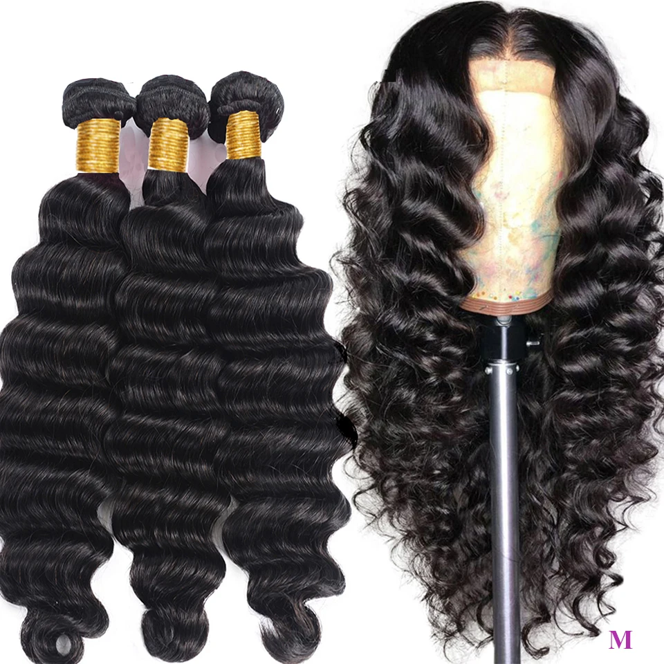 Человеческих волос глубокая волна пряди 36 40 дюймов бразильские во...