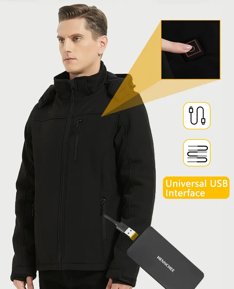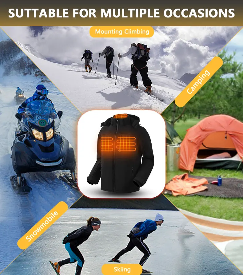 Мужские куртки с подогревом и батареей, черные пальто на молнии с капюшоном, зимние уличные теплые куртки с USB-подогревом, водонепроницаемая верхняя одежда