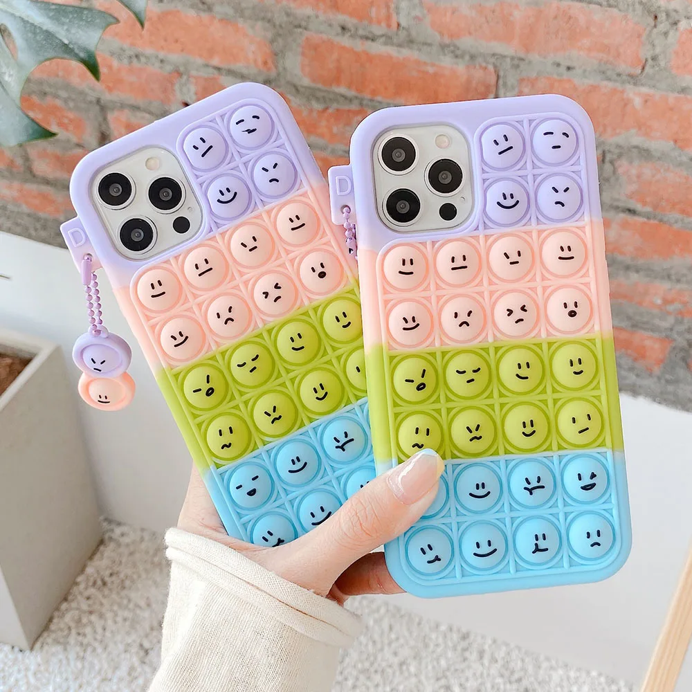 Чехол Push It снимает стресс для Samsung S21 S20 S10 S9 Plus Note10 20 A50 A51 A71 A31 A52 A32 A12 A72 Pop, Радужный чехол со смайликом