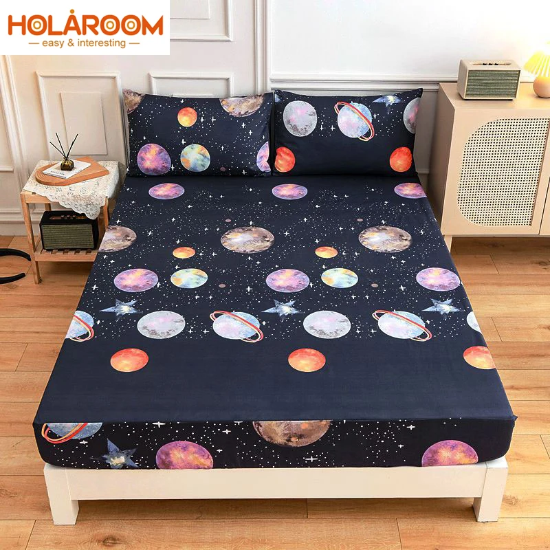 Новый продукт, 1 шт., Полиэстеровая натяжная простыня Holaroom с принтом, наматрасник с четырьмя углами и резинкой, стеганая защита для кровати